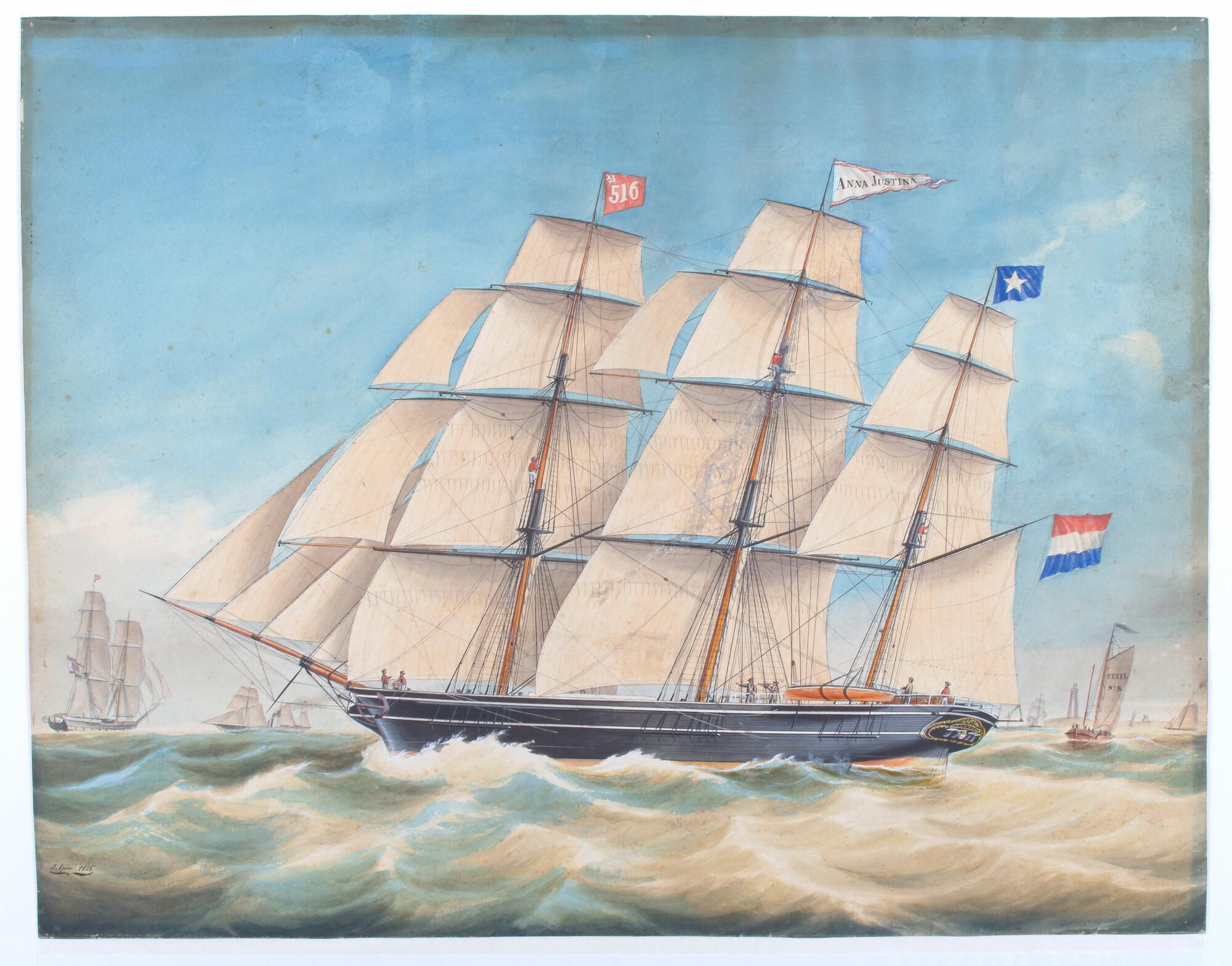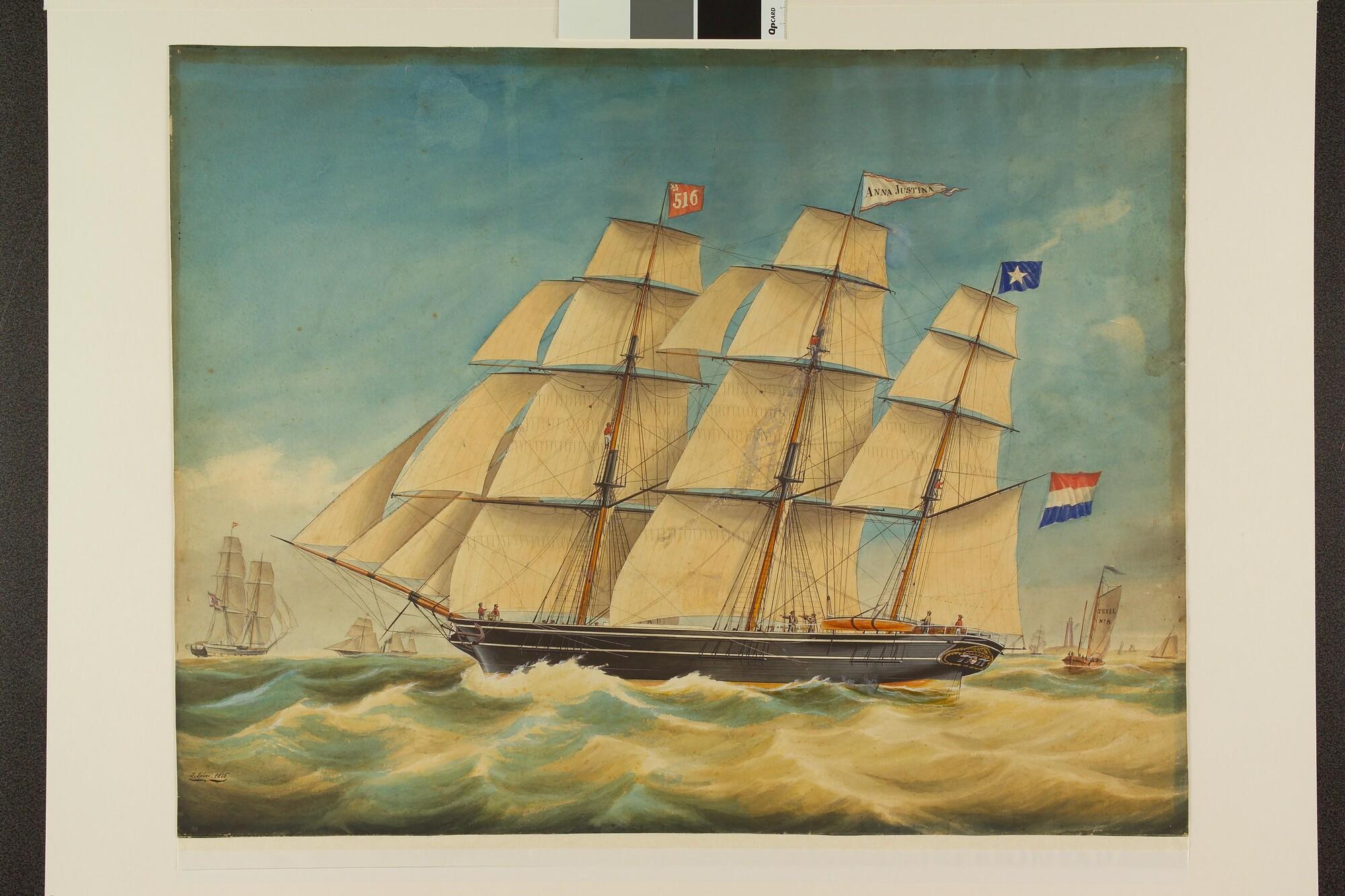 De kruisbark Anna Justina en de loodsboot Texel No. 8 ter hoogte van Huisduinen.