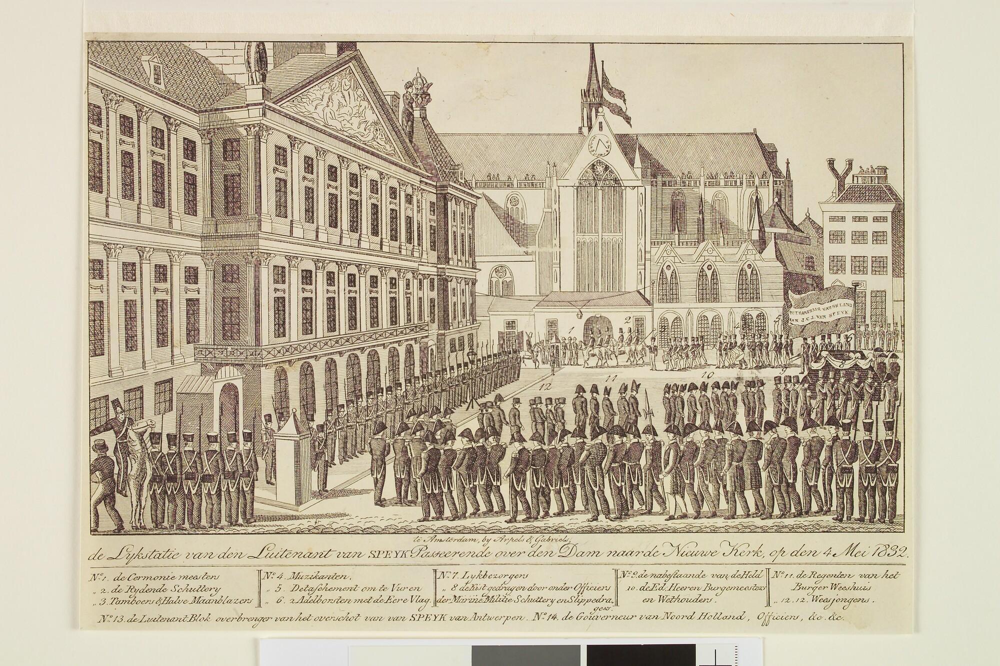 Begrafenisstoet van Van Speyk op de Dam te Amsterdam