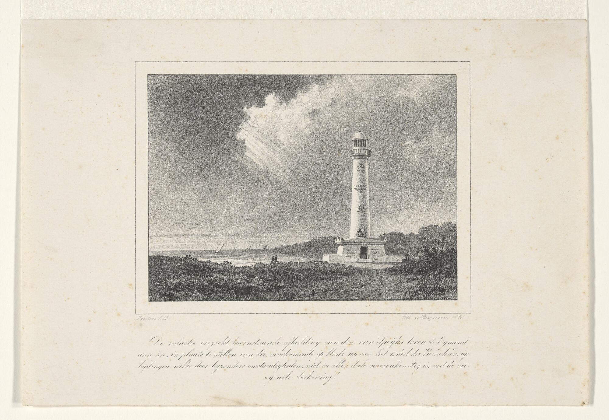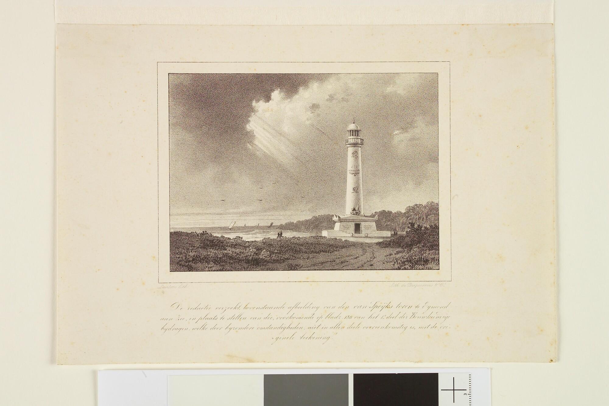 De vuurtoren, opgericht ter ere van Van Speyk te Egmond aan Zee, naar plan van J.D. Zocher.