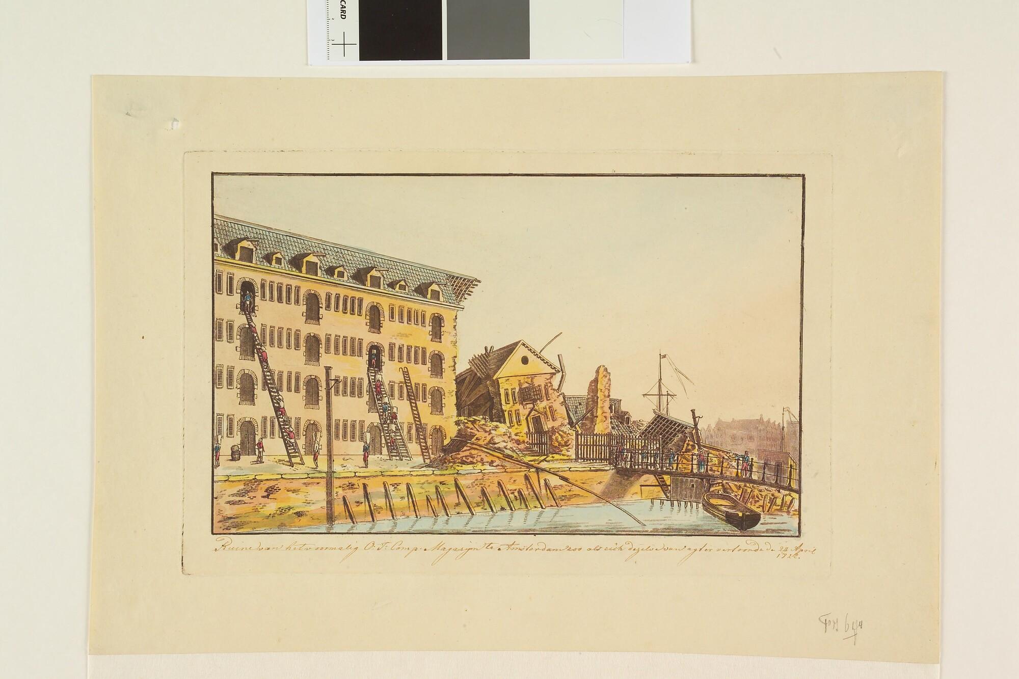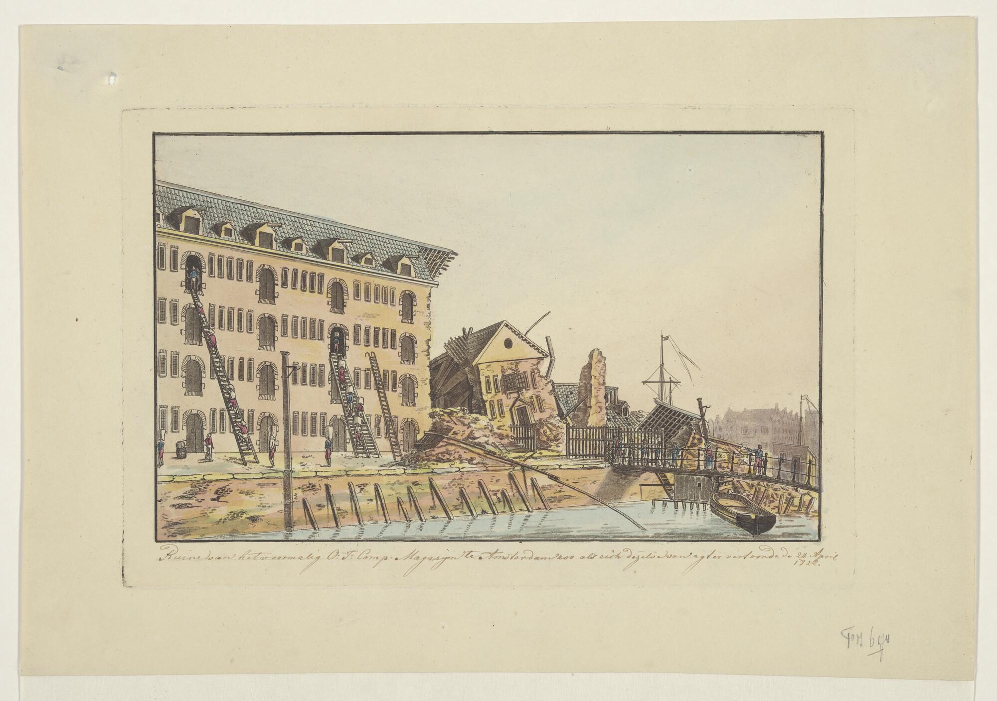 Ruïne van het VOC-magazijn te Amsterdam, na de instorting, 1822