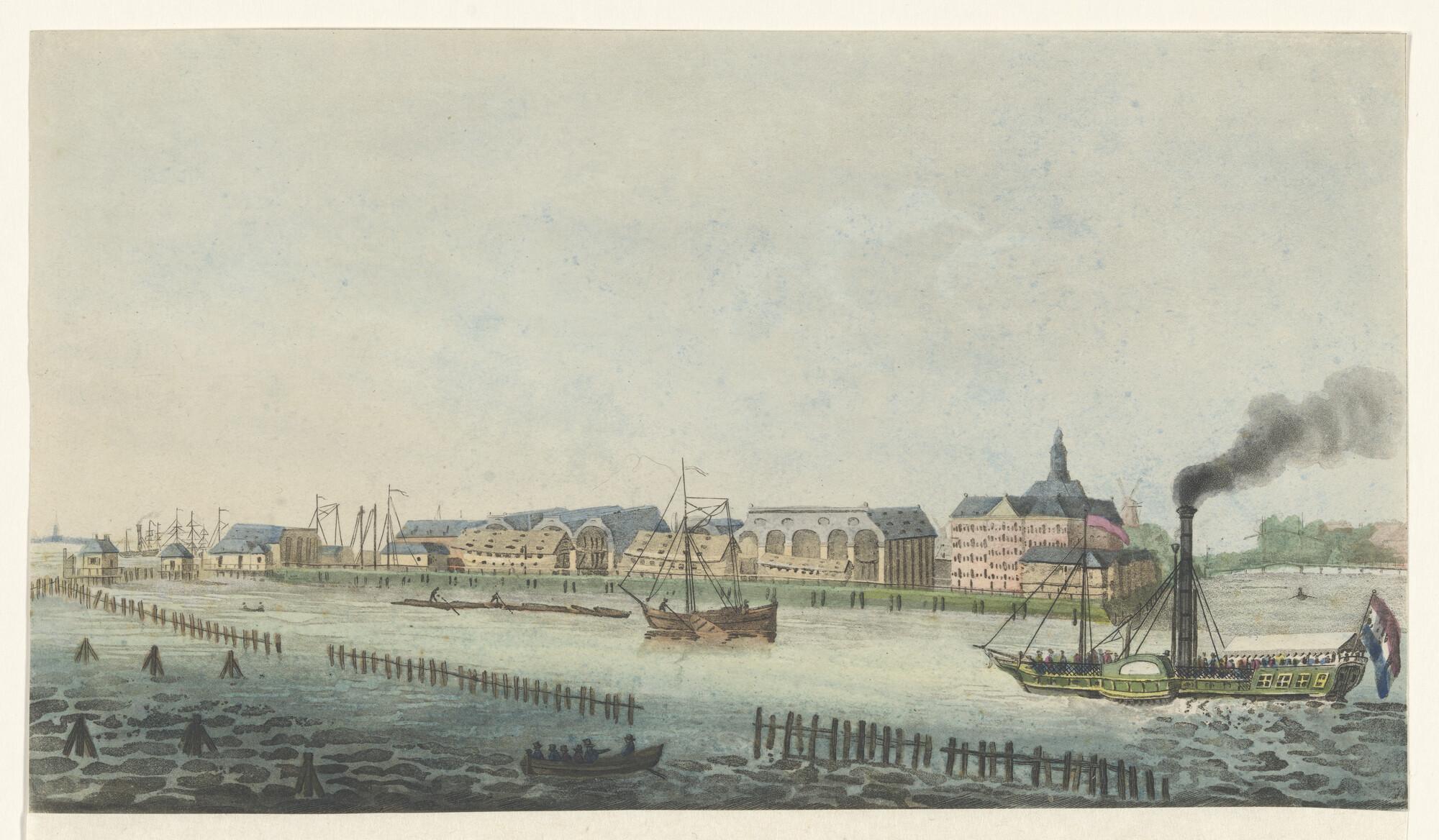 De raderstoomboot tussen Amsterdam en Zaandam, voor het Zeemagazijn en de Rijkswerf.