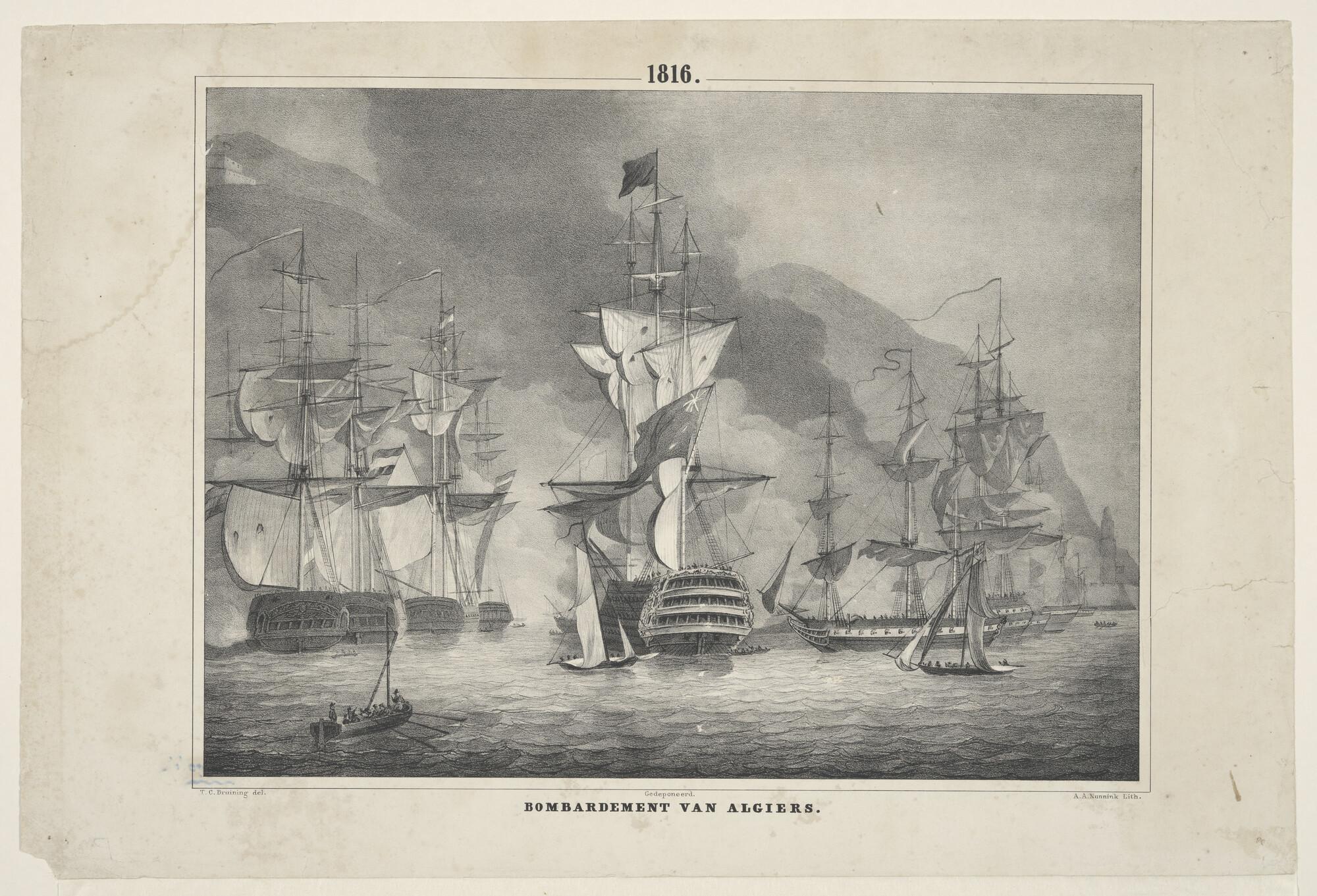Het bombardement van Algiers door Engelse en Nederlandse oorlogsschepen, 1816.