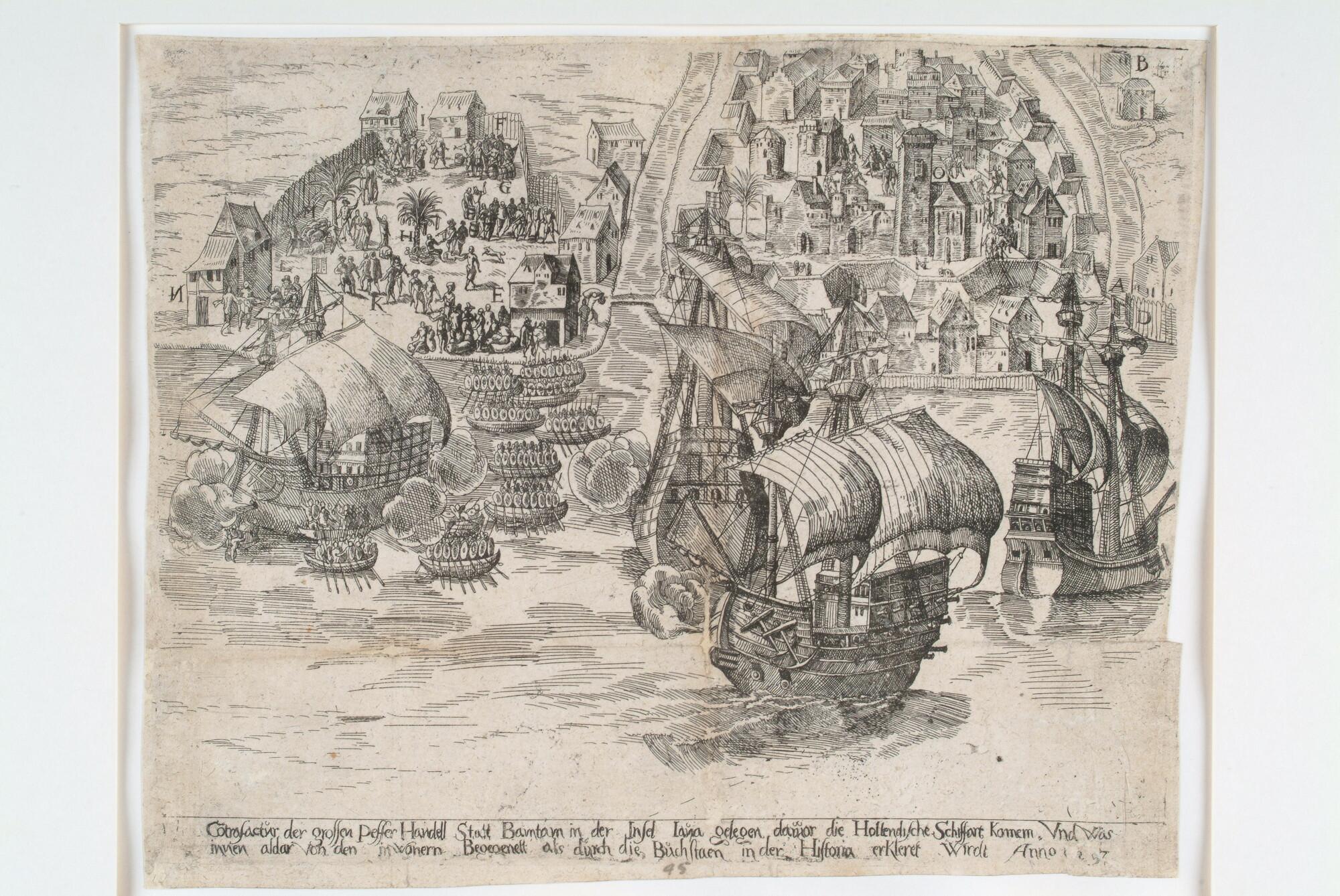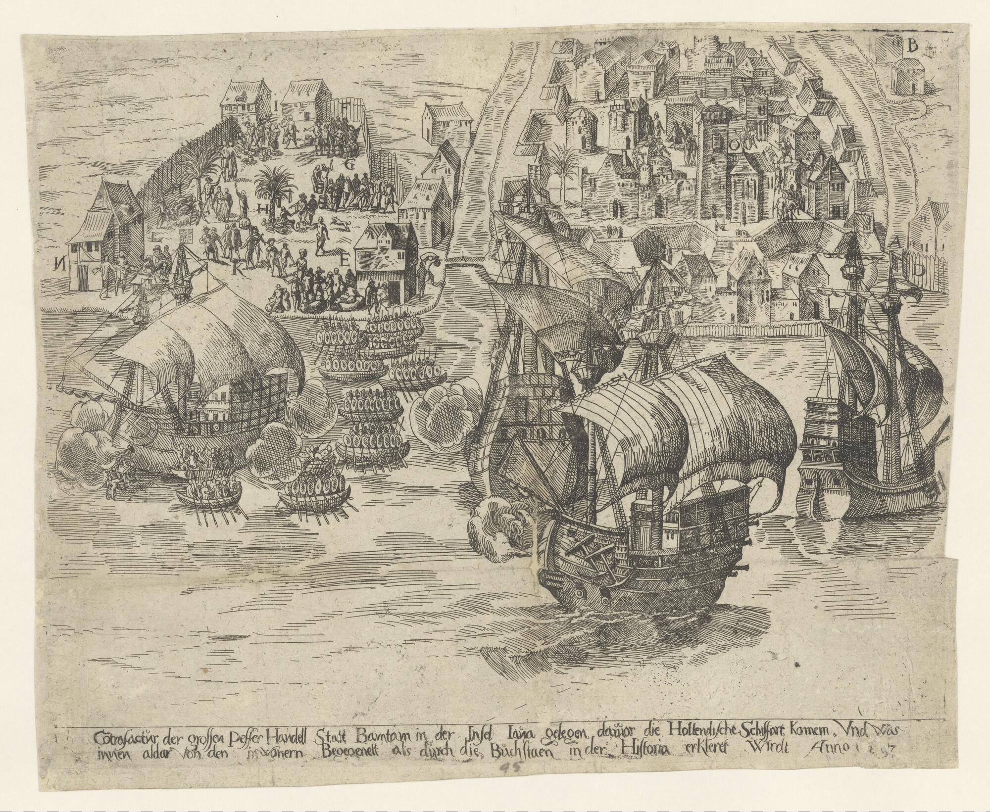 De stad Bantam op het eiland Java, belangrijk voor zijn peperhandel in die