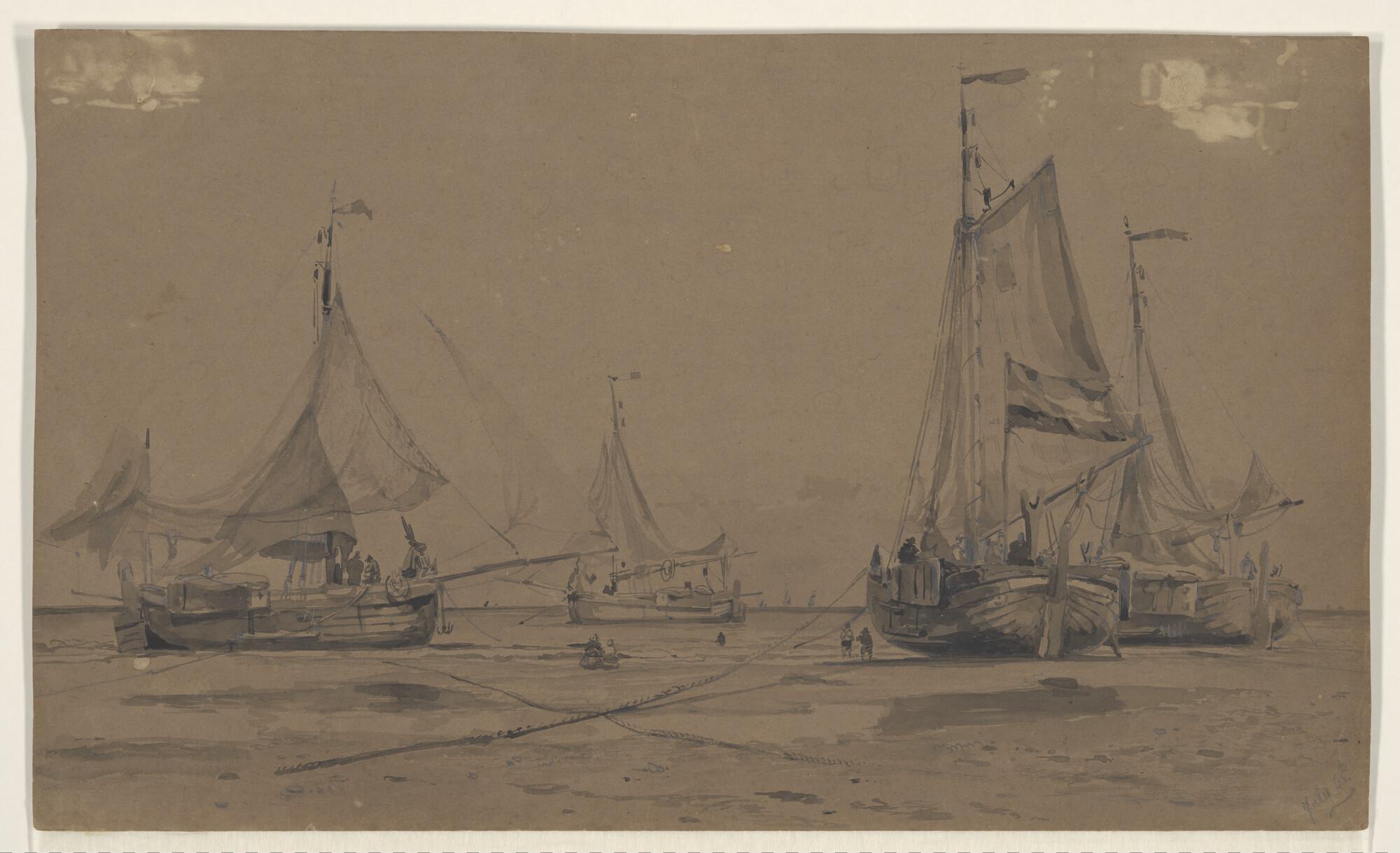 Vier bomschepen in de vloedlijn.