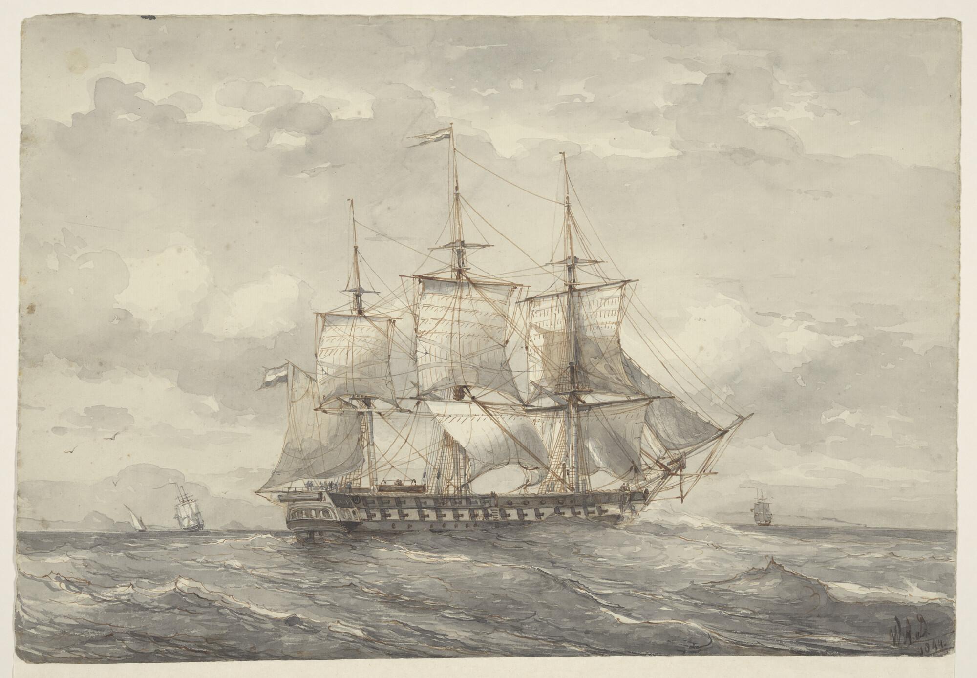 Een oorlogsfregat in open water