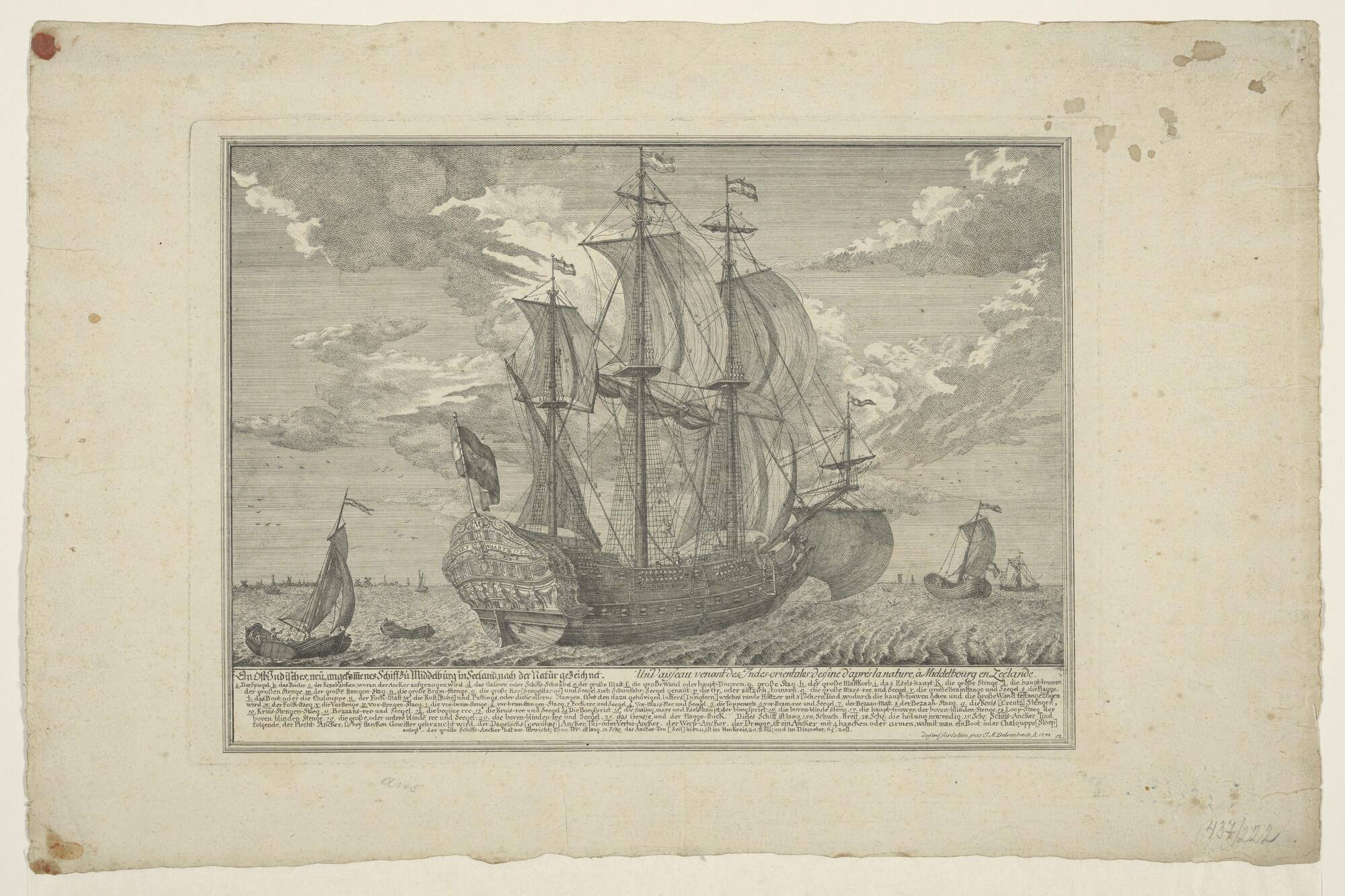 Ein Ost-Indisches neu angekommenes Schiff zu Middelburg in Seeland, nach der natur gezeichnet.