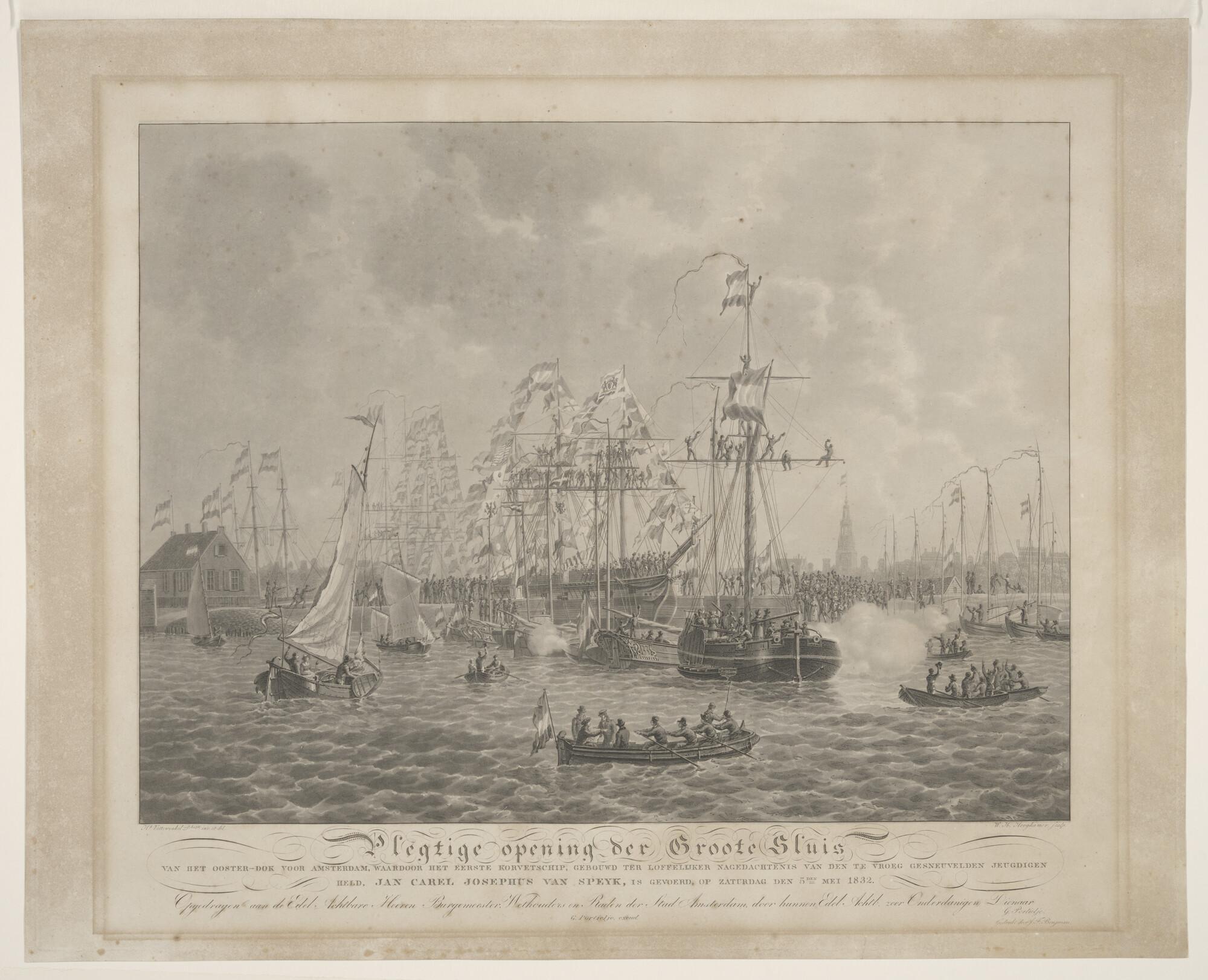 De plechtige opening van de Groote Sluis in het Oosterdok te Amsterdam