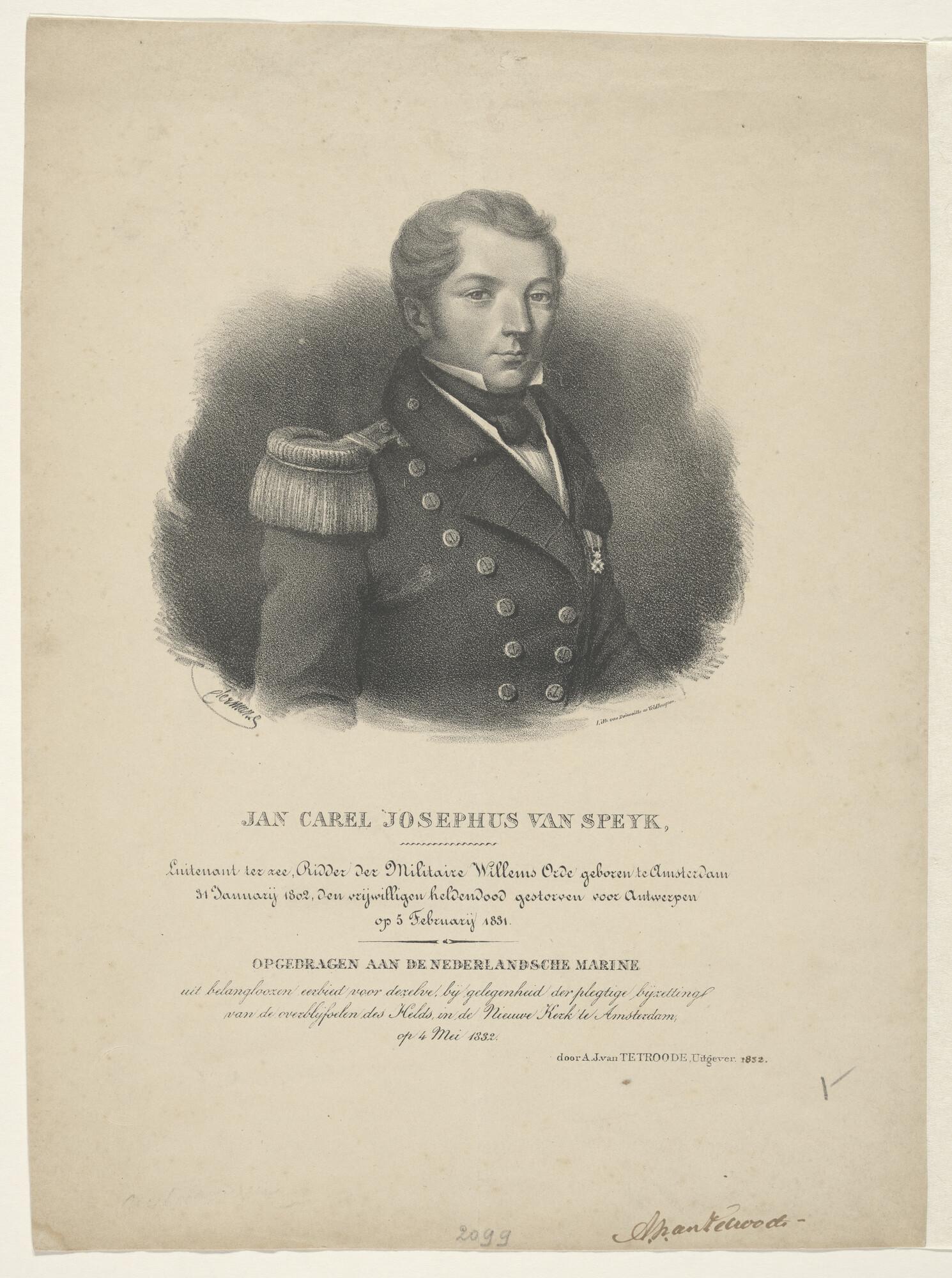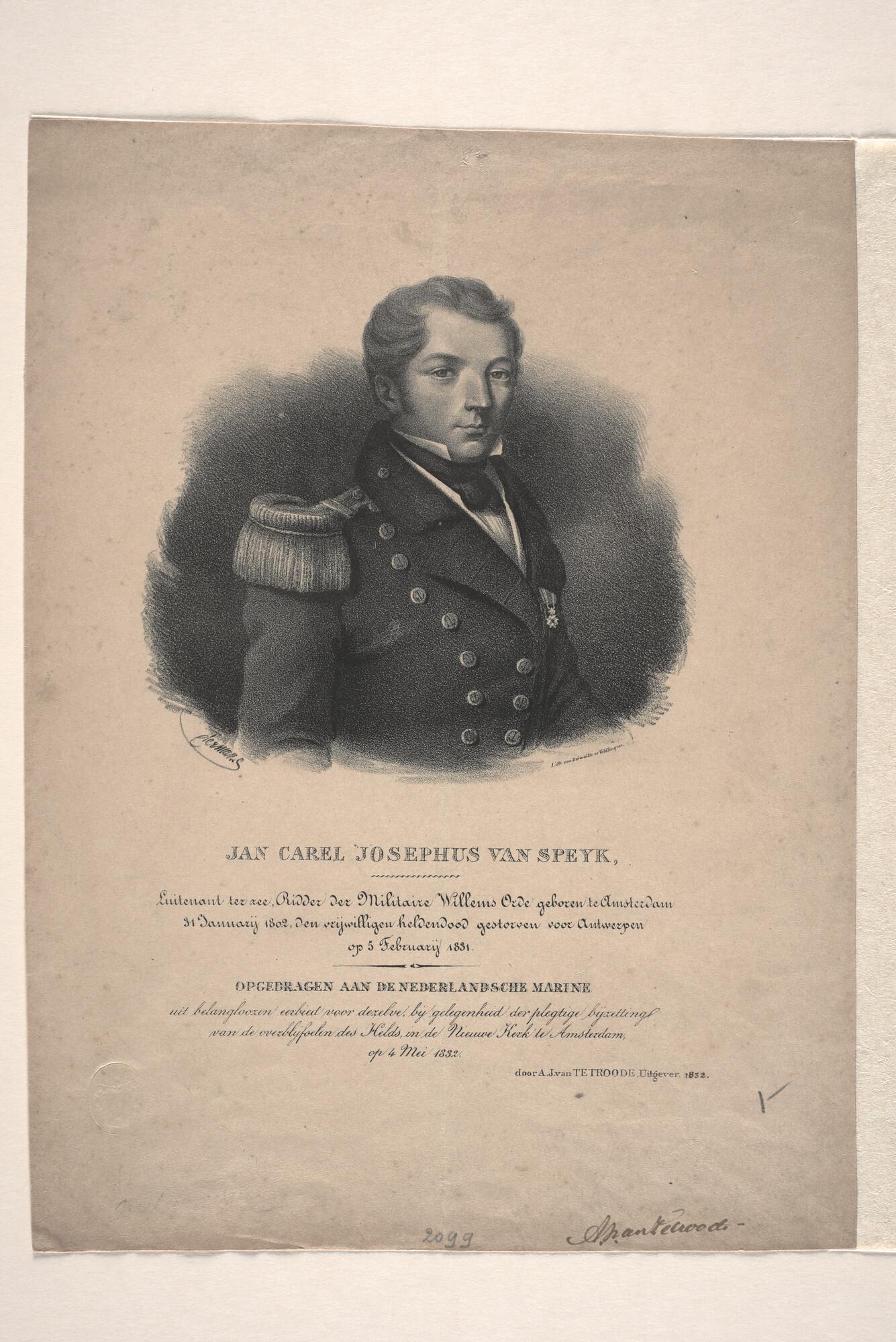 Portret van J.C.J. van Speyk, borstbeeld rechts, met ridderorde.