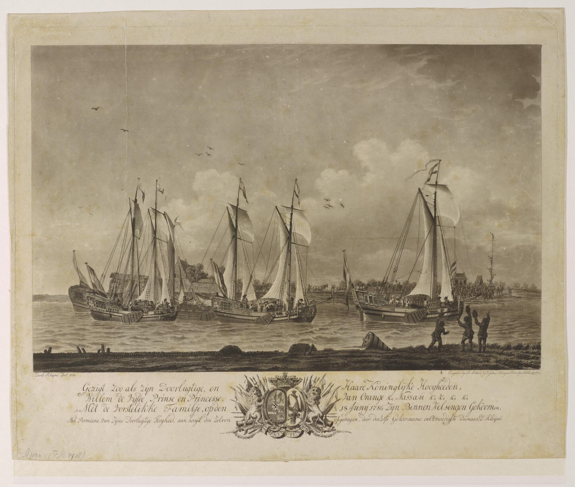 Gezigt zoo als zijn doorlugtige, en Haare Koninklijke Hoogheeden Willem de Vijfde Prinse en Prinsesse van Orange & Nassau, enz. Met de Vorstelikke Familje op den 18 Juny 1786 zijn binnen gekoomen.