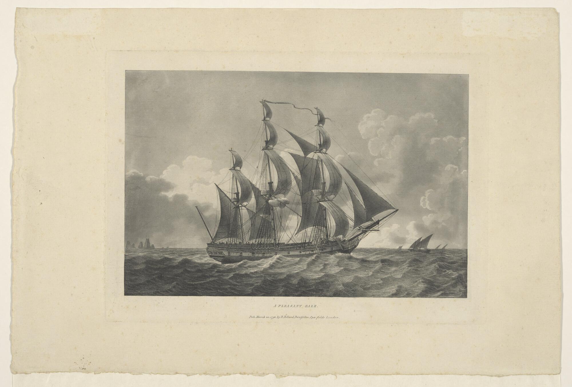 Engelse aquatint, getiteld "A Pleasant Gale".