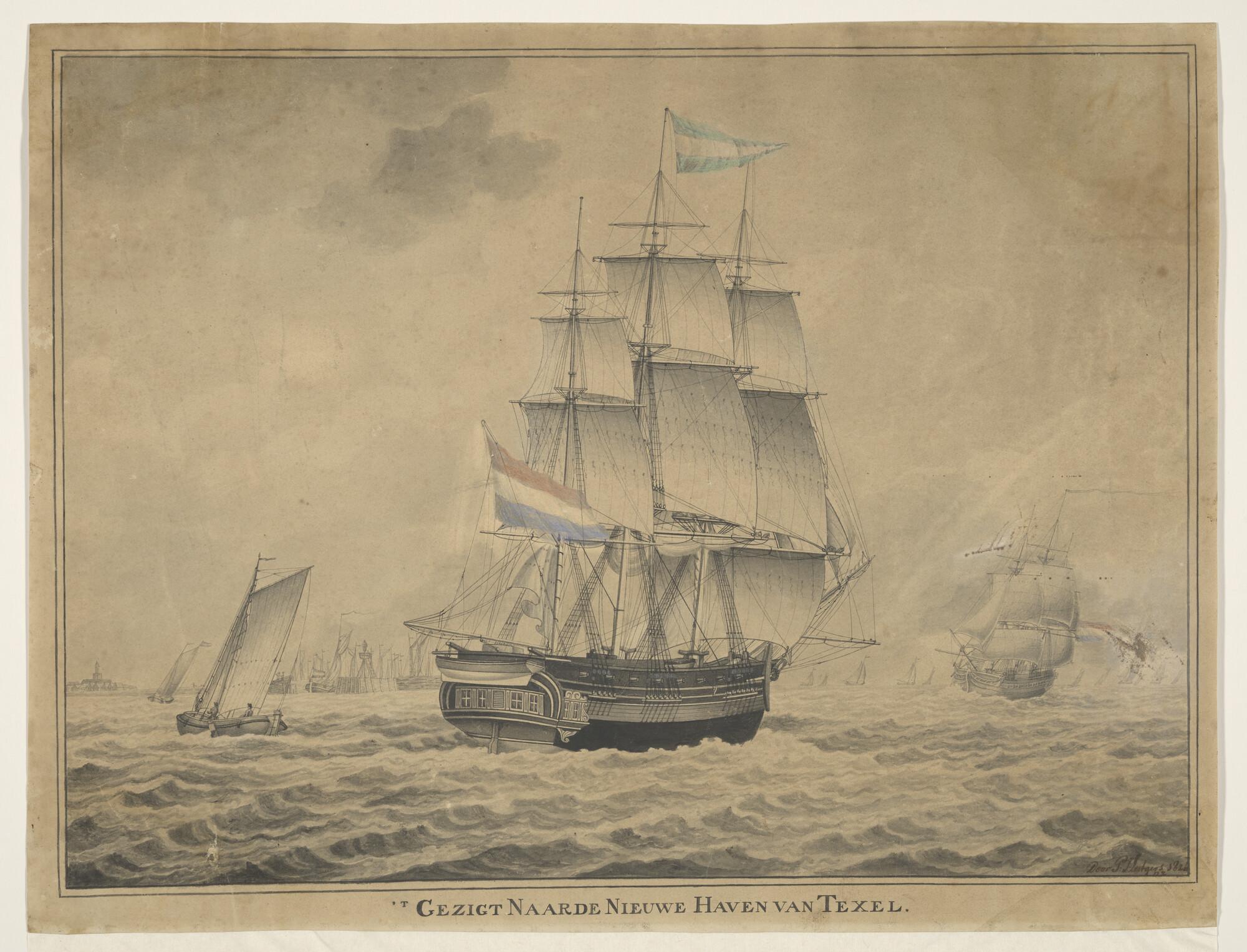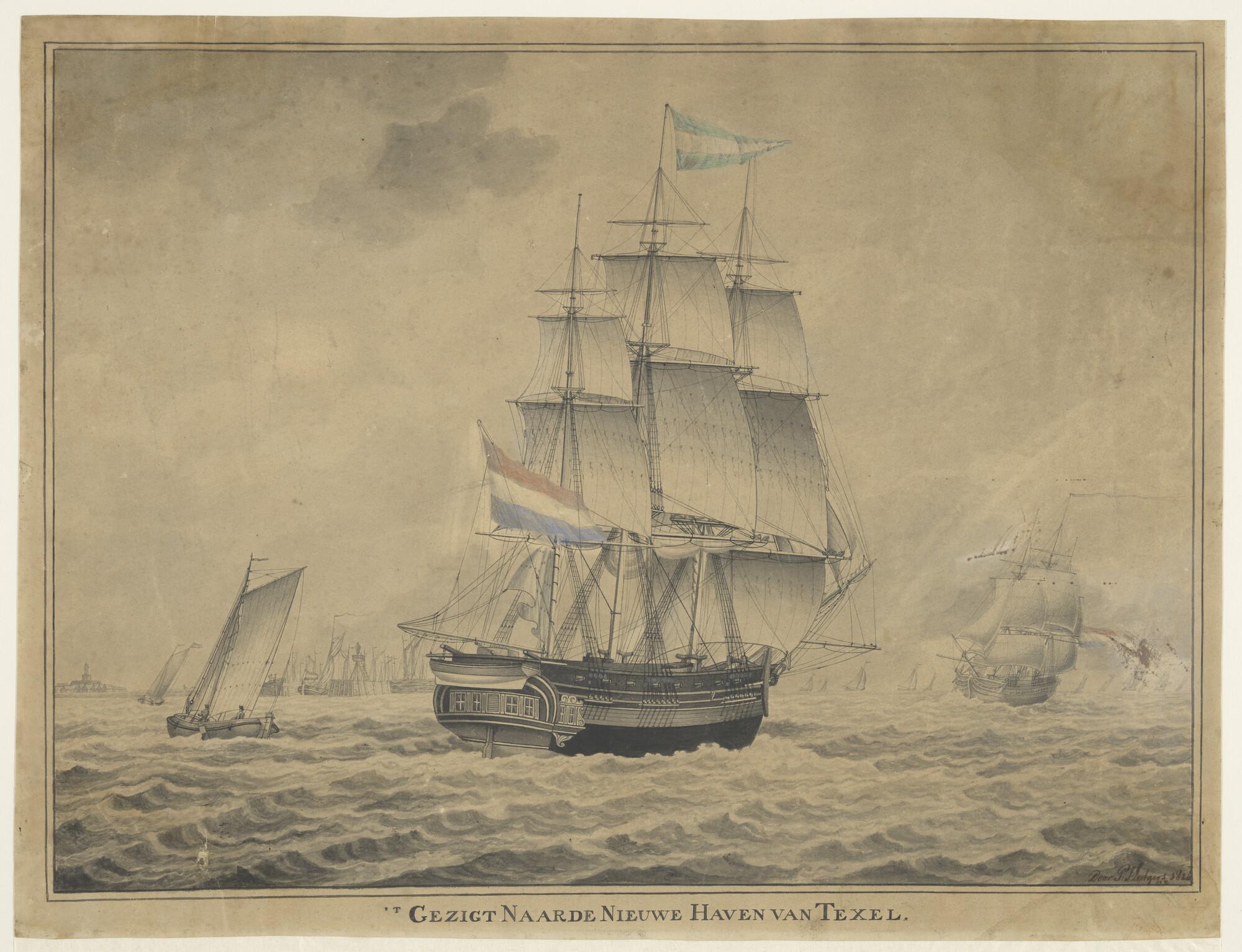Een fregatschip op de rede van Texel.