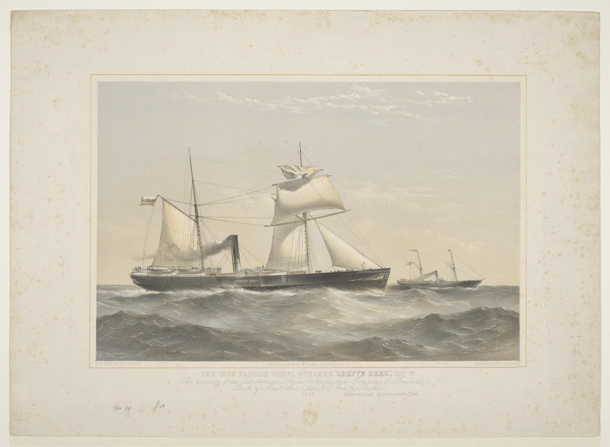 Het Finse ijzeren raderstoomschip "Grefve Berg".