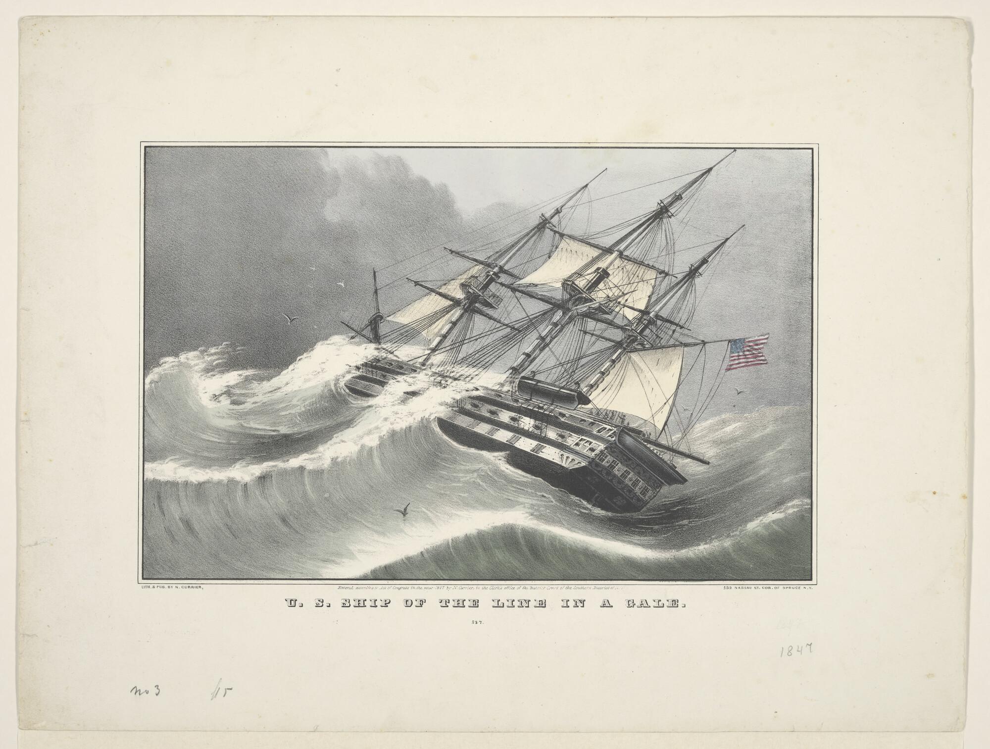Een Amerikaans Linieschip in harde wind.