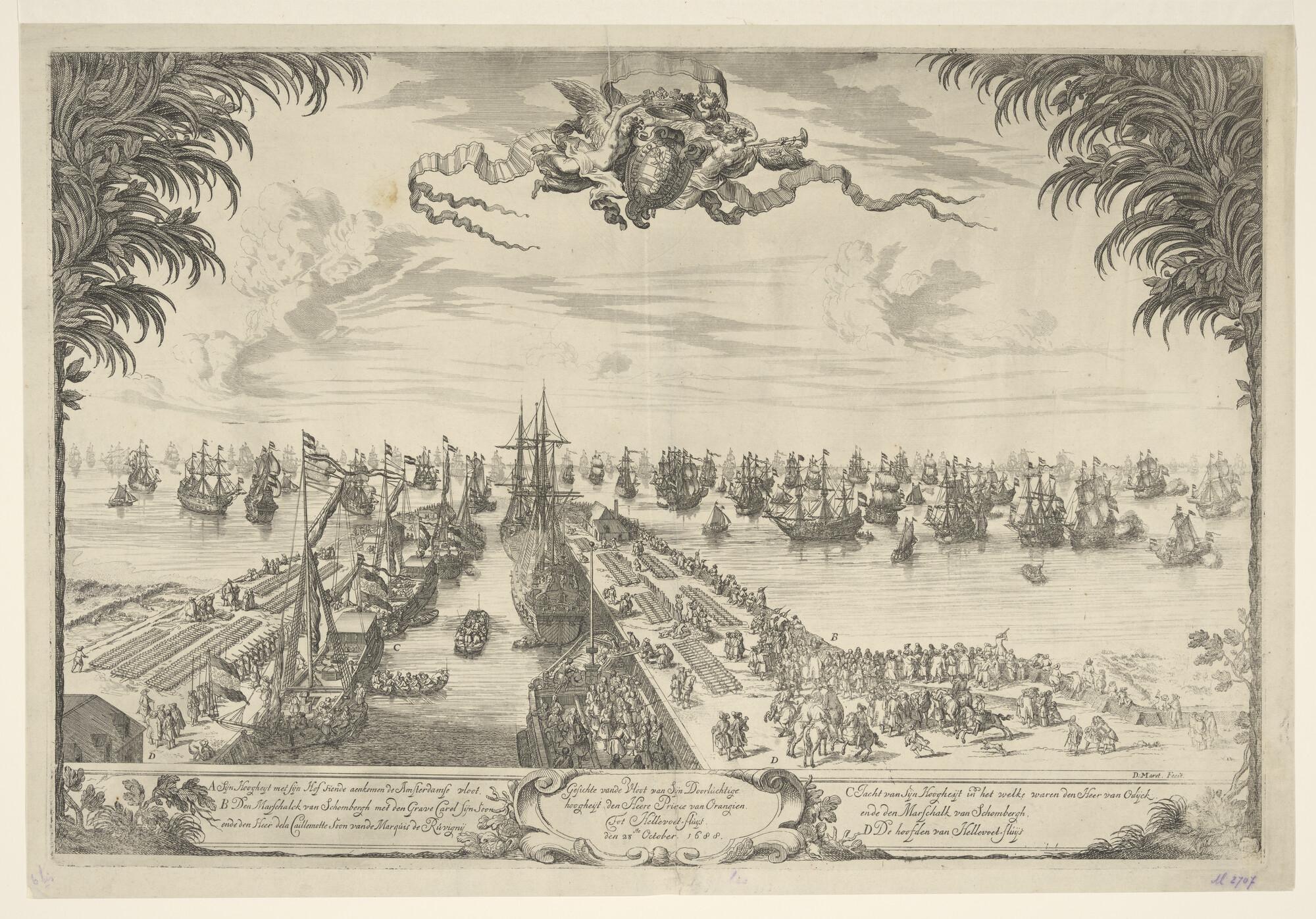 Gezicht van de vloot van Willem III voor Hellevoetsluis.