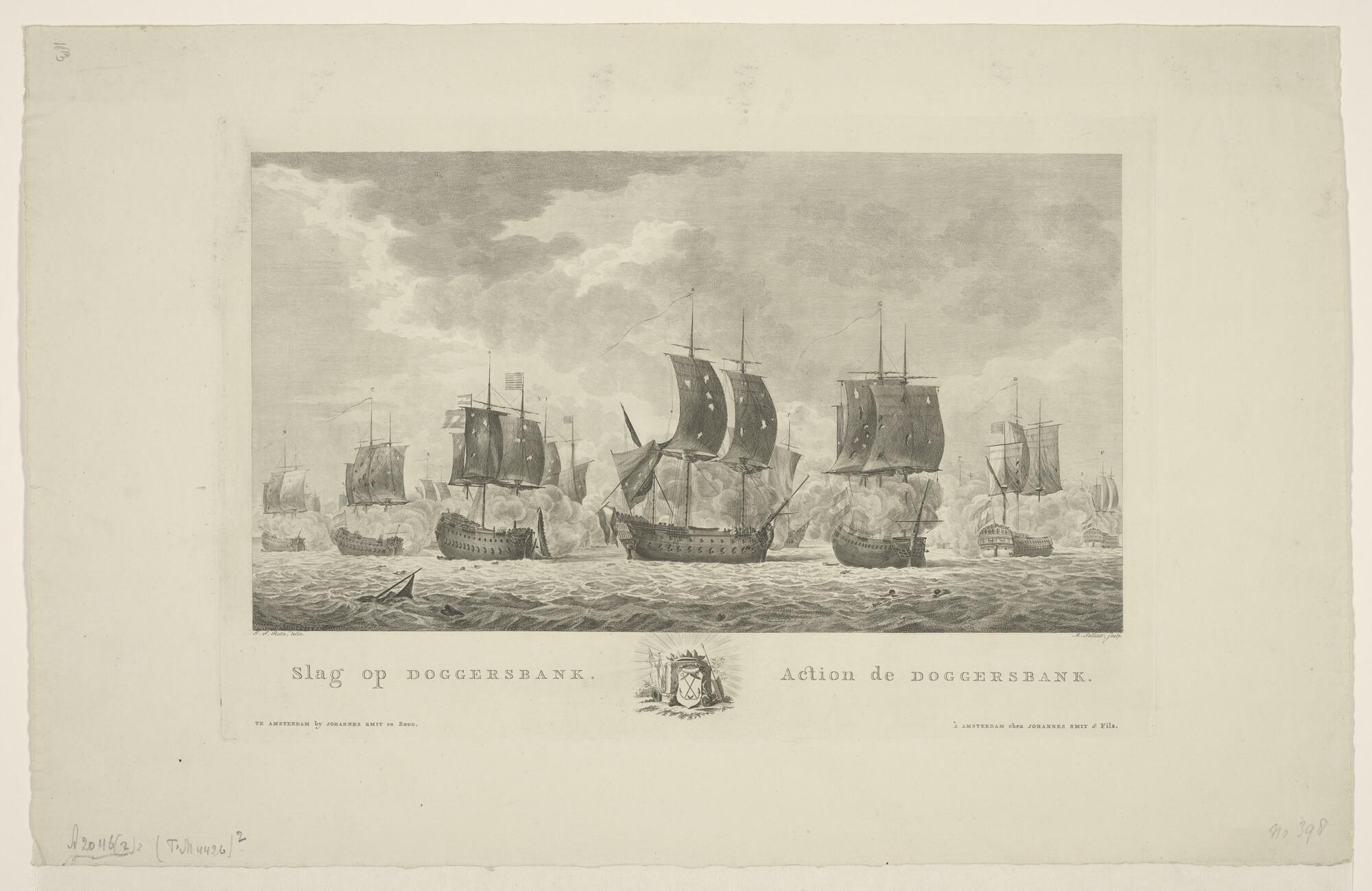 Slag op Doggersbank. Uit een serie van drie ongenummerde platen: tijdens de slag.