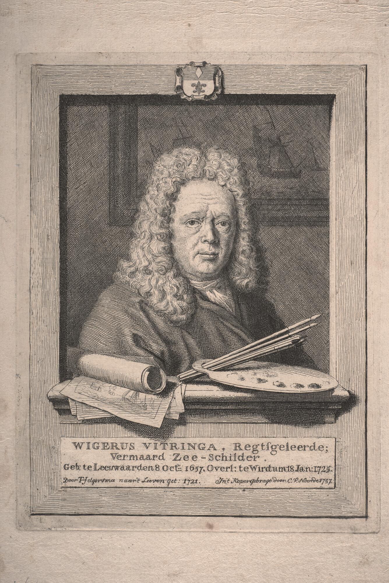 Portret van Wigerus Vitringa, rechtsgeleerde, borststuk naar voren en rechts.