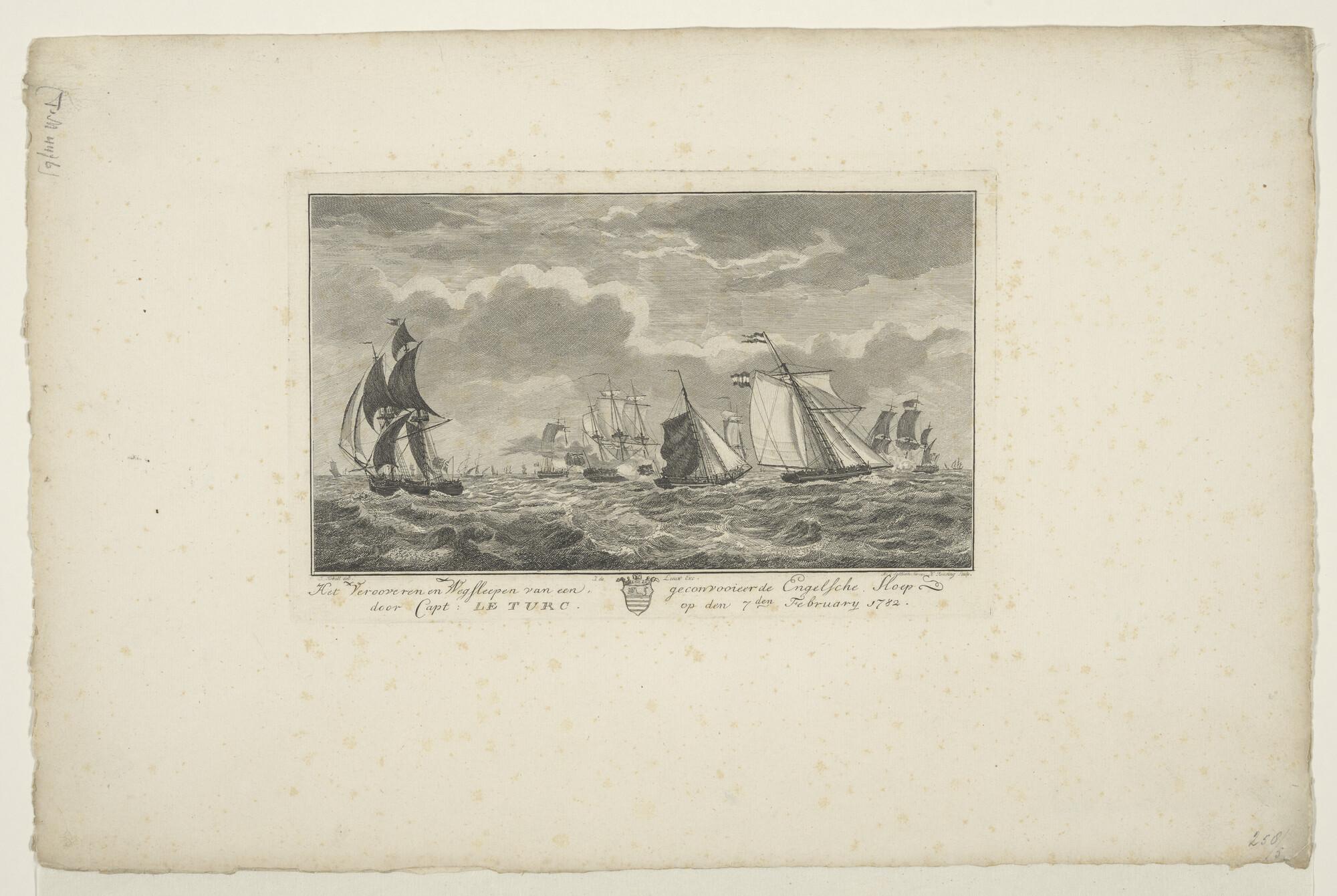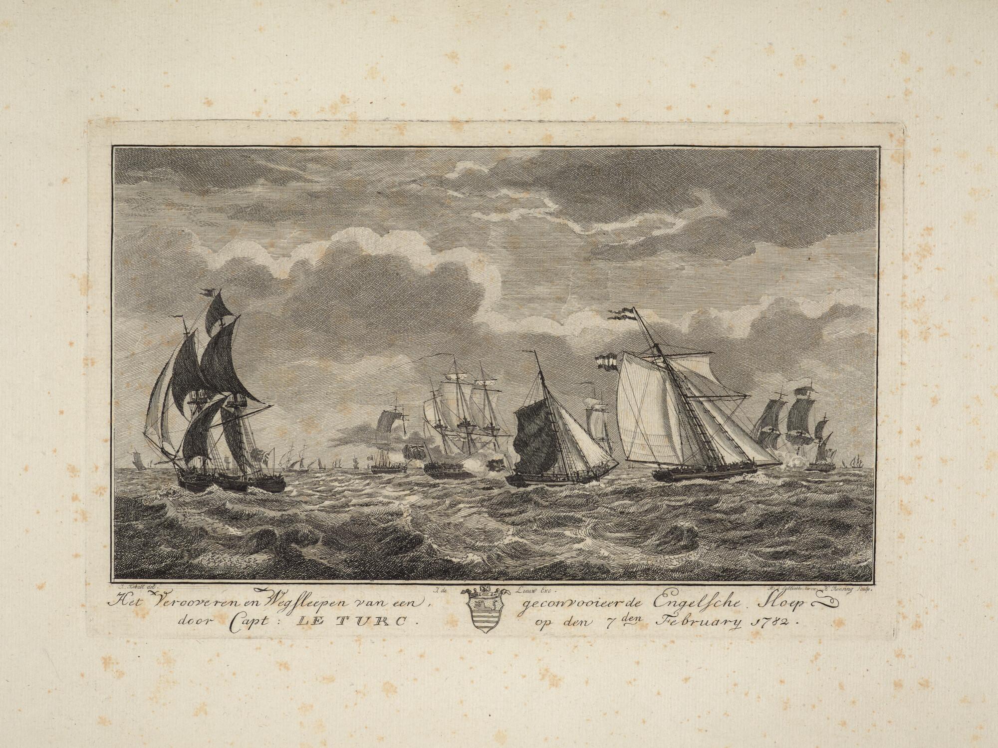 Het veroveren en wegslepen van een Engelse sloep door Kapitein P. le Turc, 7 februari 1782.
