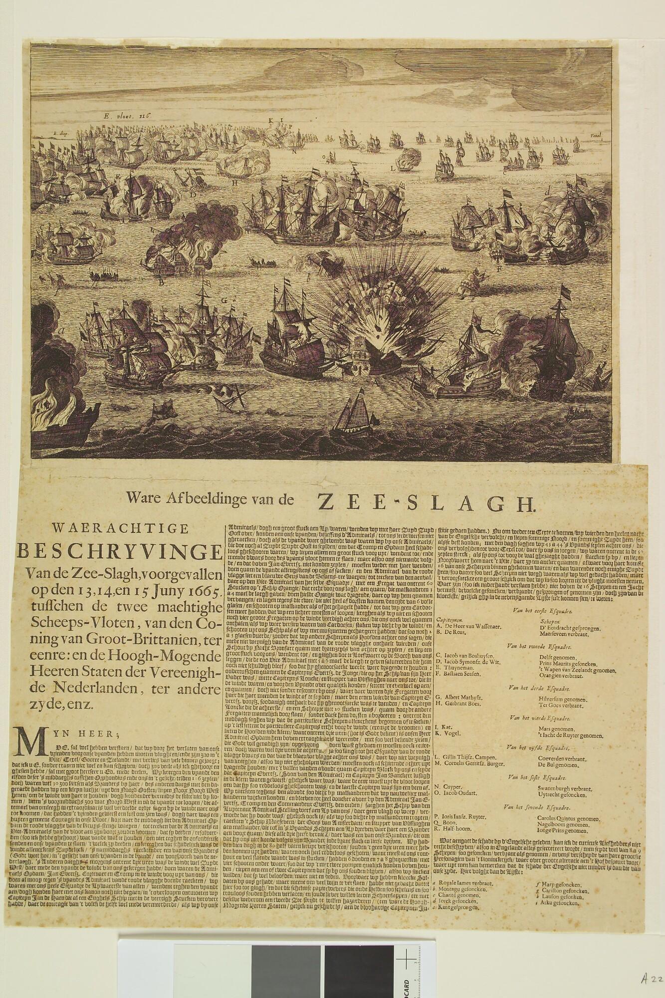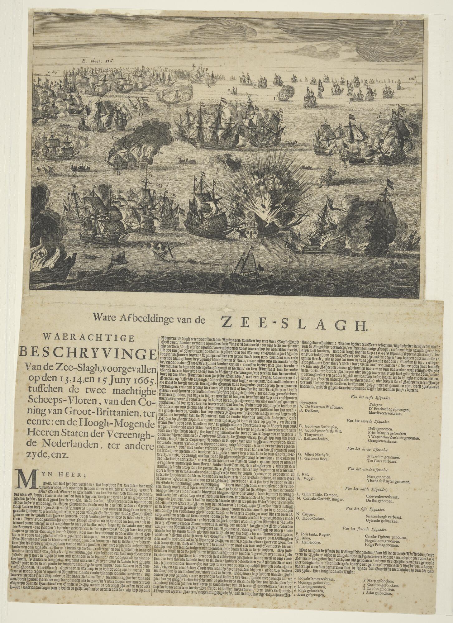 Zeeslag tussen de Engelsen en de Hollanders bij Lowestoft, gedurende de Tweede Engelse Oorlog.