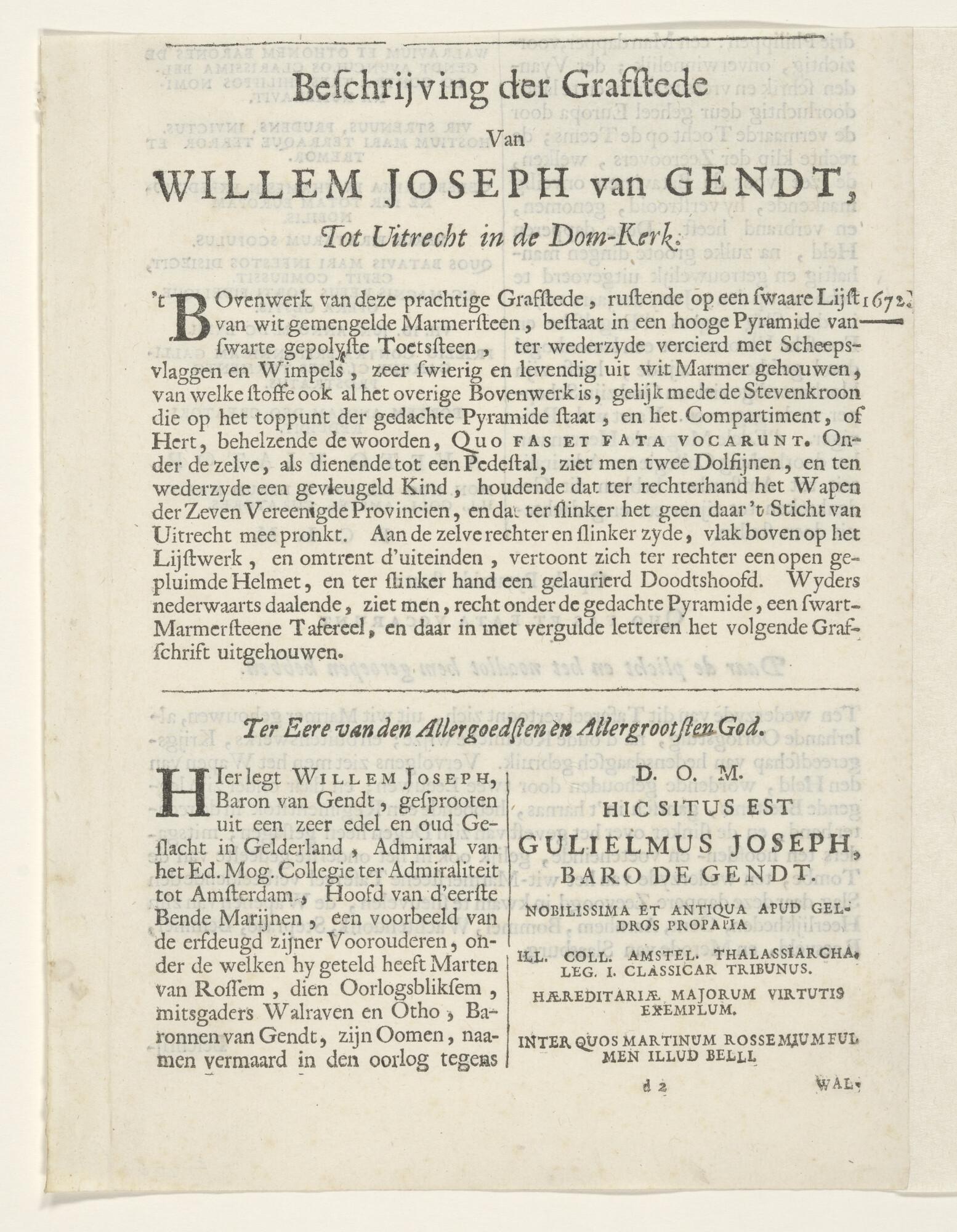 Beschrijving van het praalgraf van Willem Joseph van Gendt