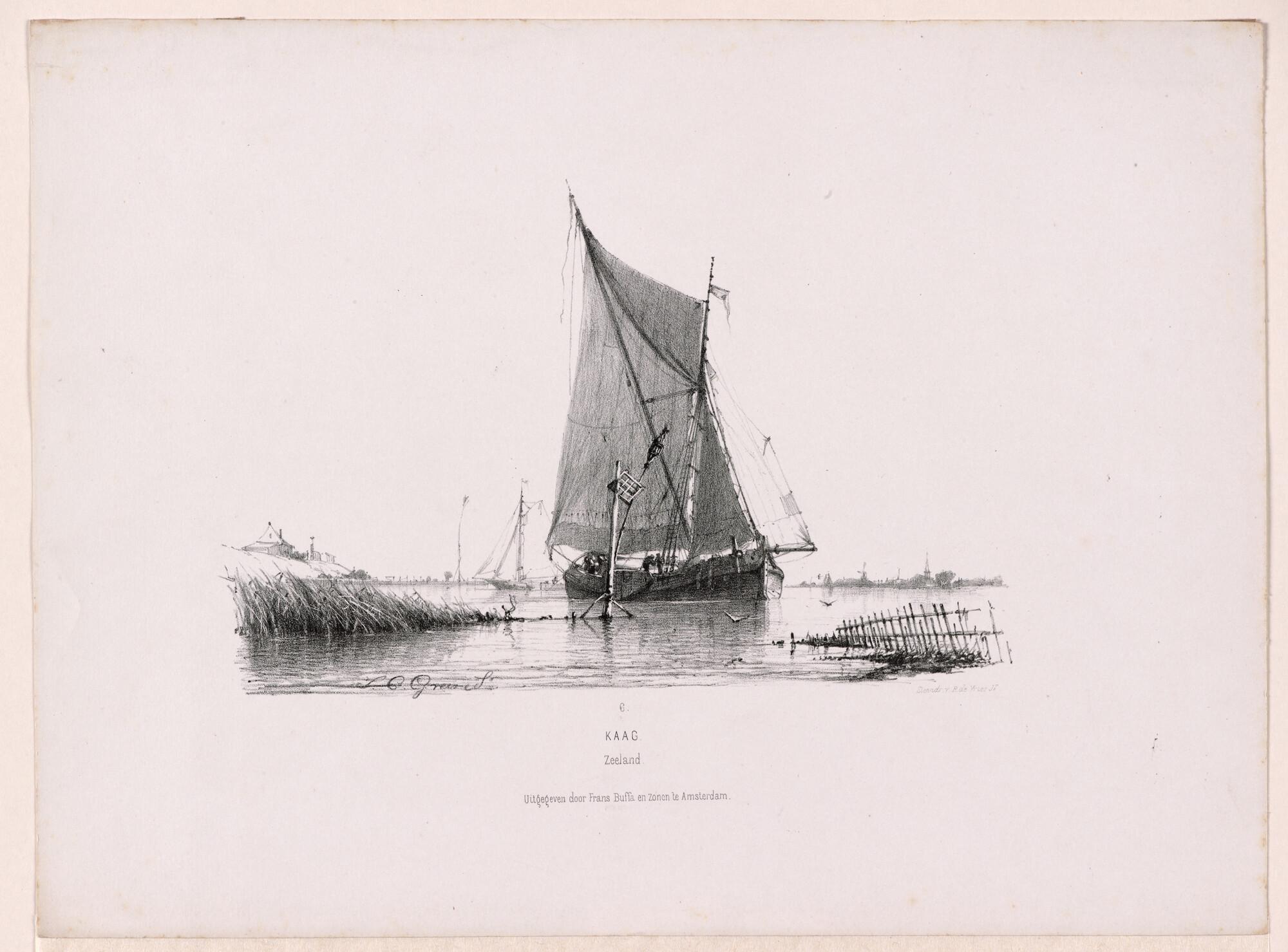 Studien van Hollandsche schepen, naar de natuur. Serie van twaalf litho's, nummer 6: kaag.
