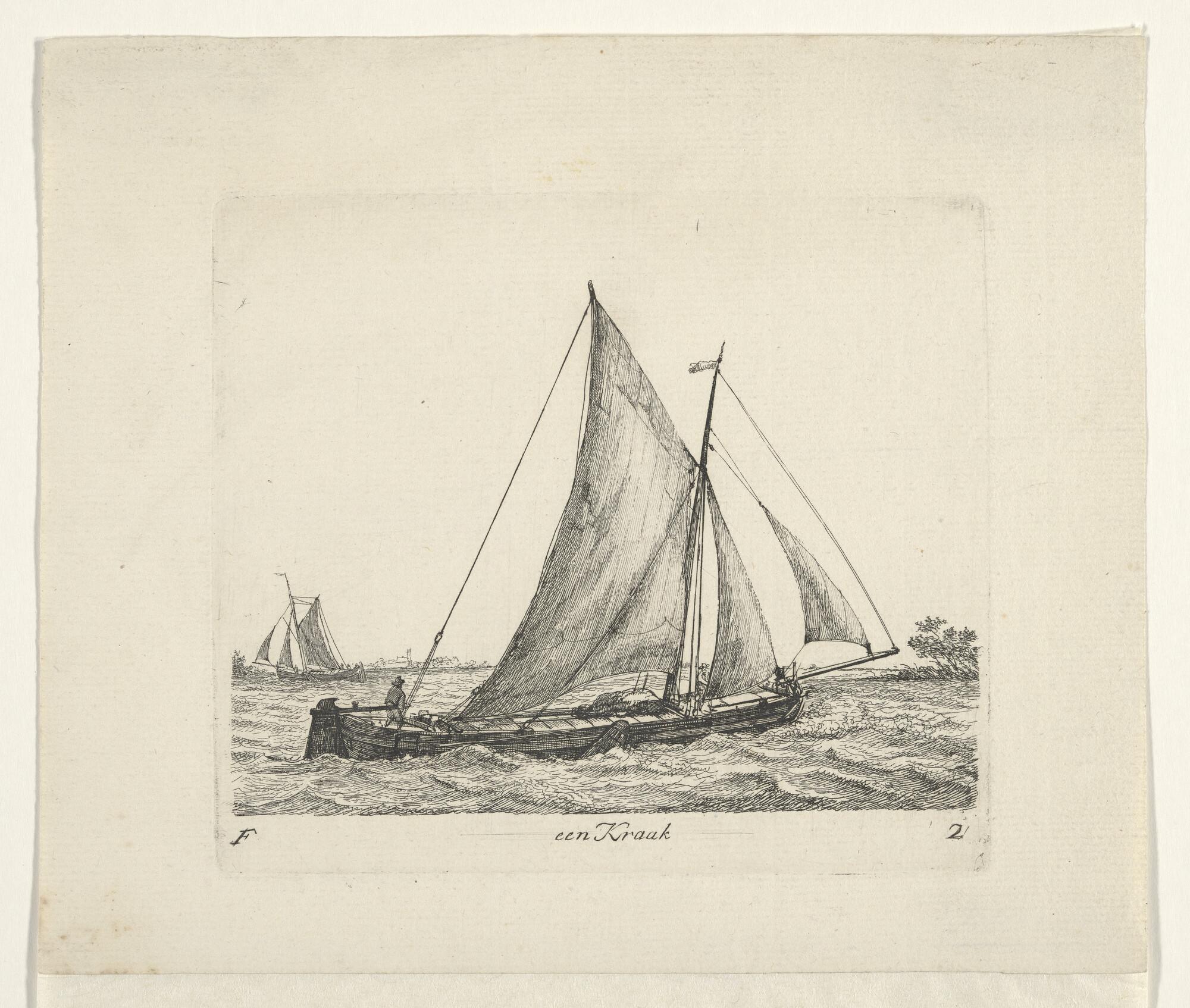 Prent van een kraak. Uit de suite "Verscheide soorten van Hollandse vaartuigen".
