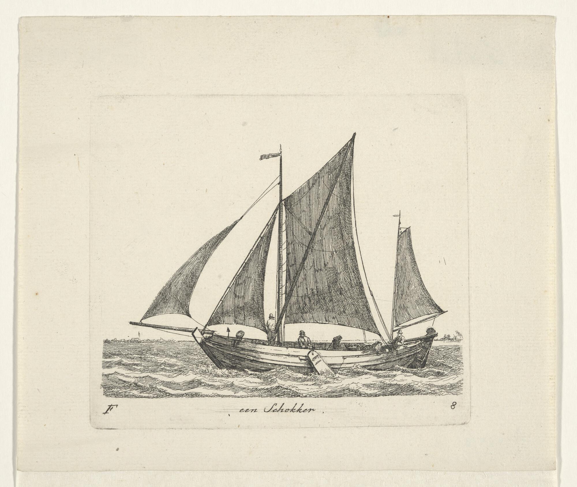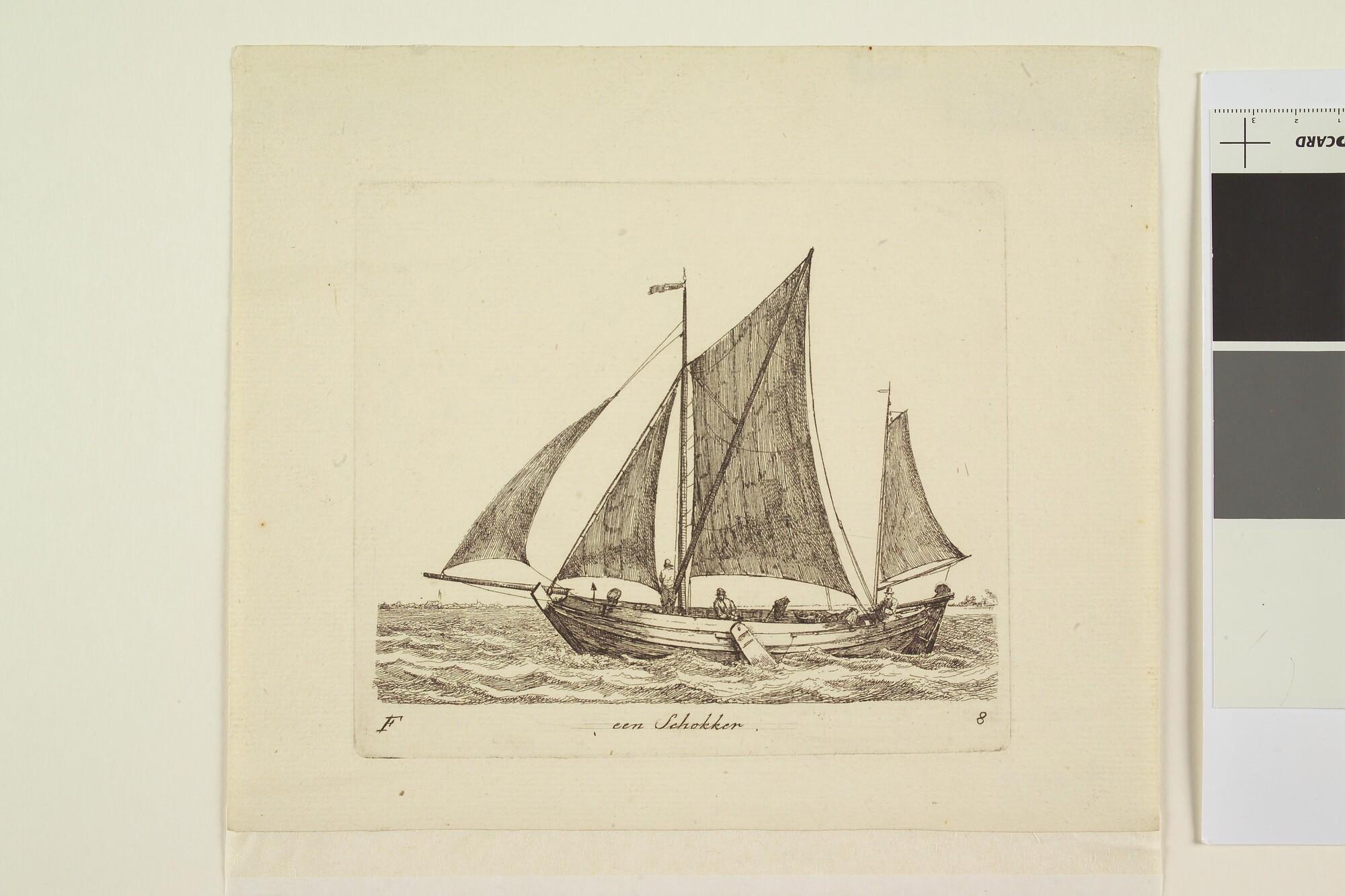 Prent van een schokker. Uit de suite "Verscheide soorten van Hollandse vaartuigen".