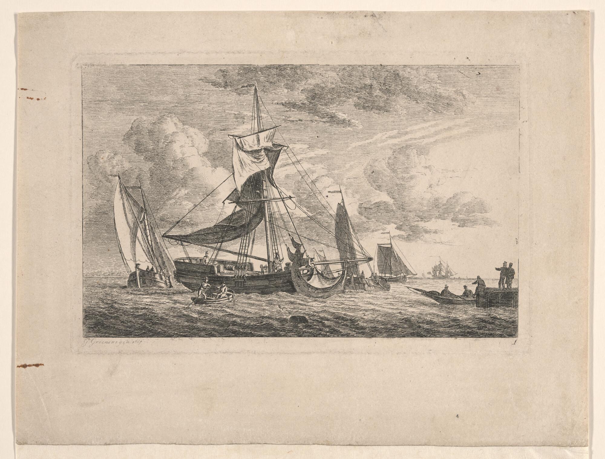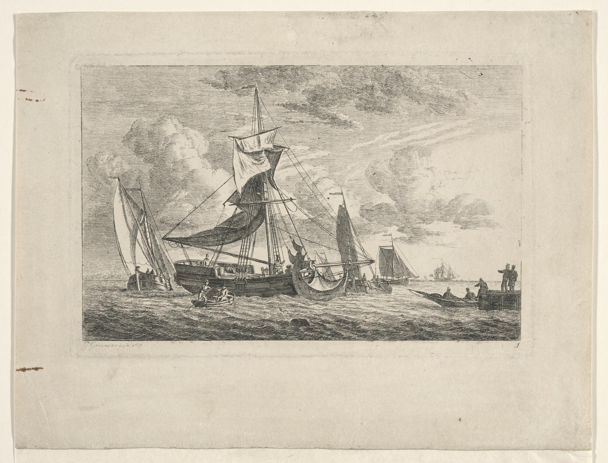 Uit de serie van zeegezichten met diverse soorten vaartuigen: nummer 1