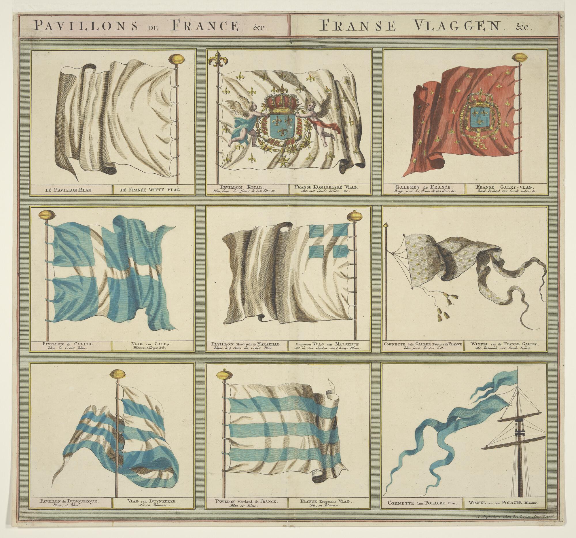 'Pavillons de France.' Vlaggenkaart met 9 vlaggen uit een serie van 12 bladen