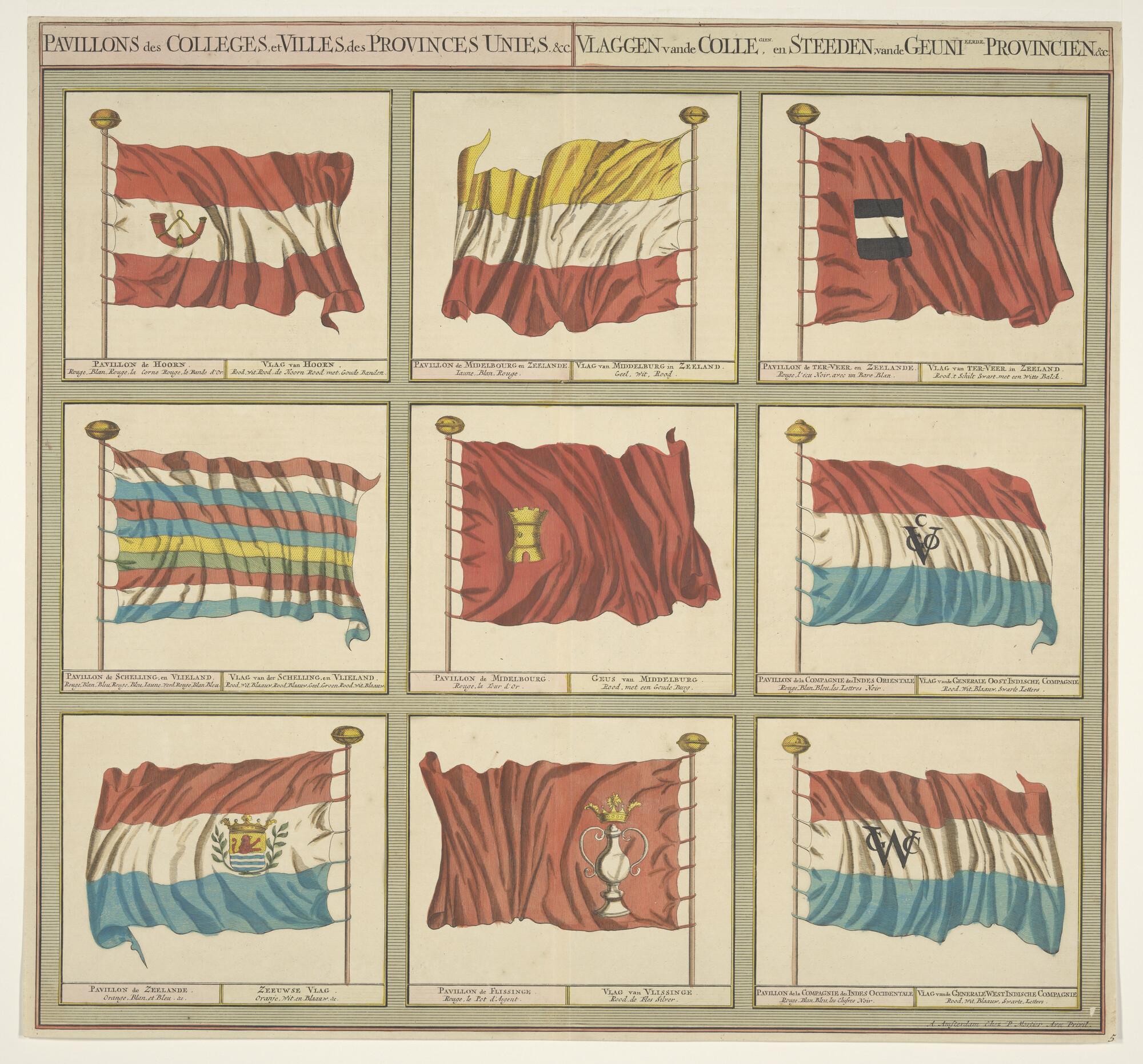Vlaggenkaart met 9 afbeeldingen van vlaggen uit een serie van 12 bladen. Genummerd nummer 5.
