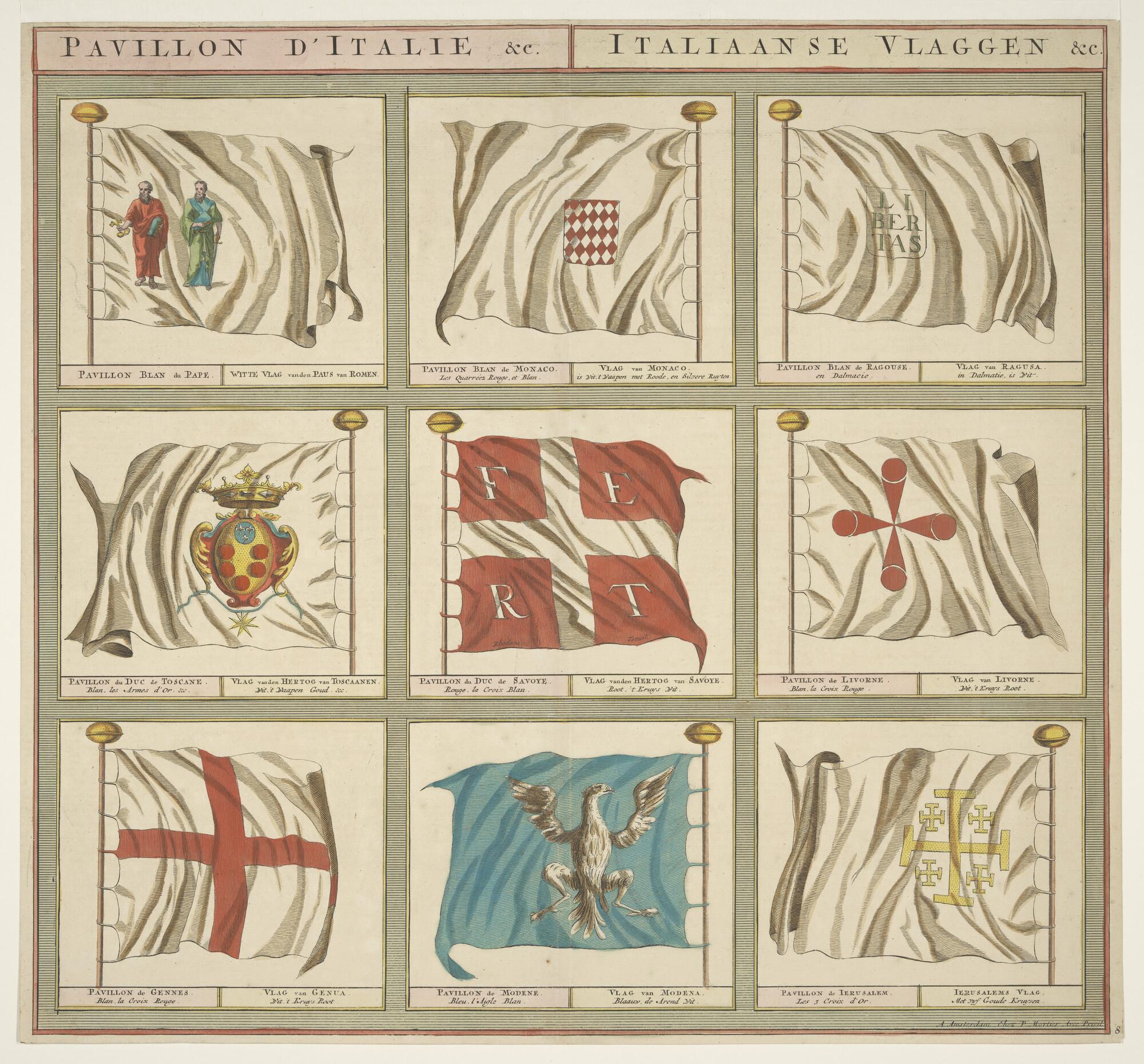 Vlaggenkaart met 9 afbeeldingen van vlaggen uit een serie van 12 bladen. Genummerd nummer 8.