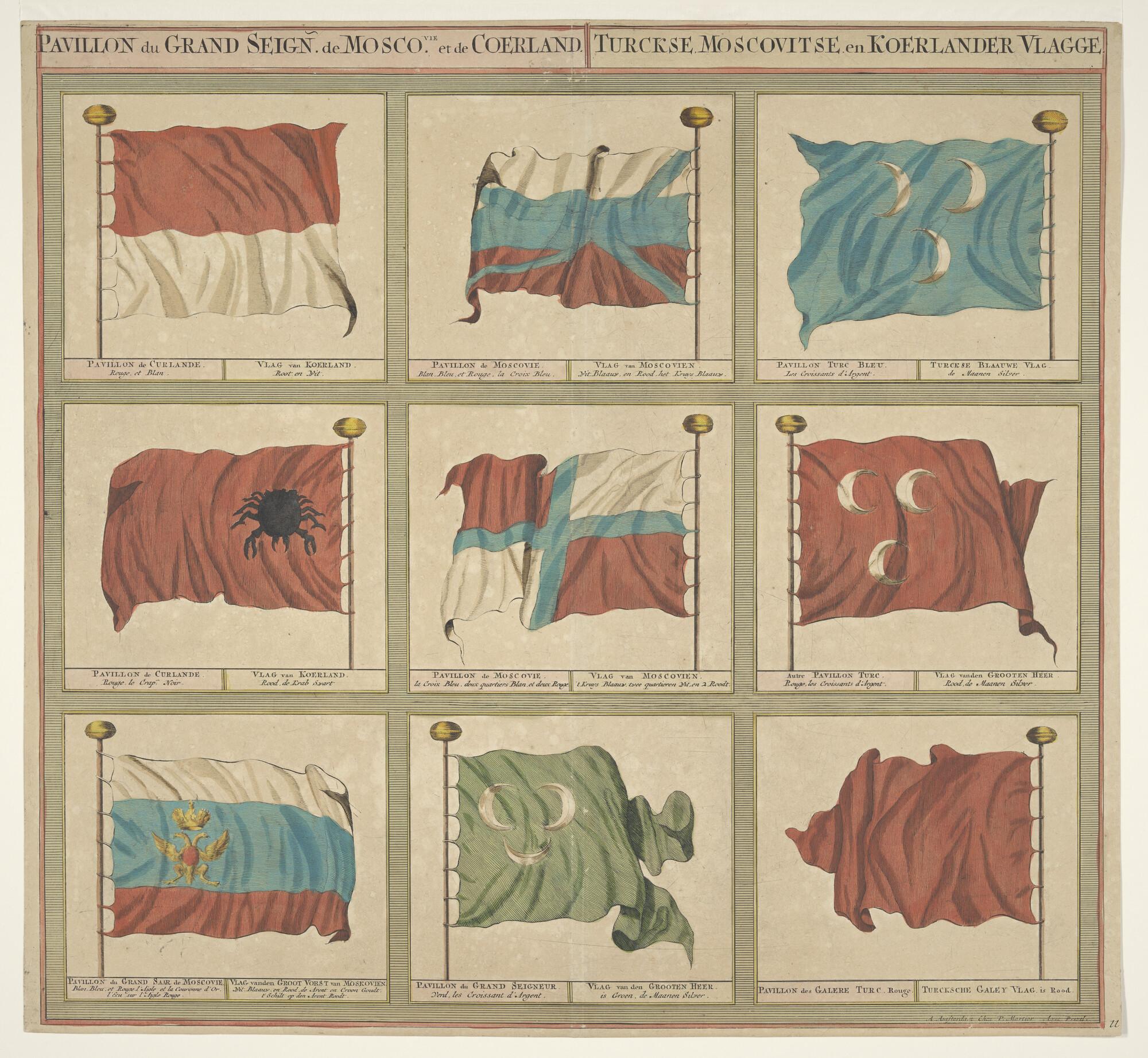 Vlaggenkaart met 9 afbeeldingen van vlaggen uit een serie van 12 bladen. Genummerd nummer 11.