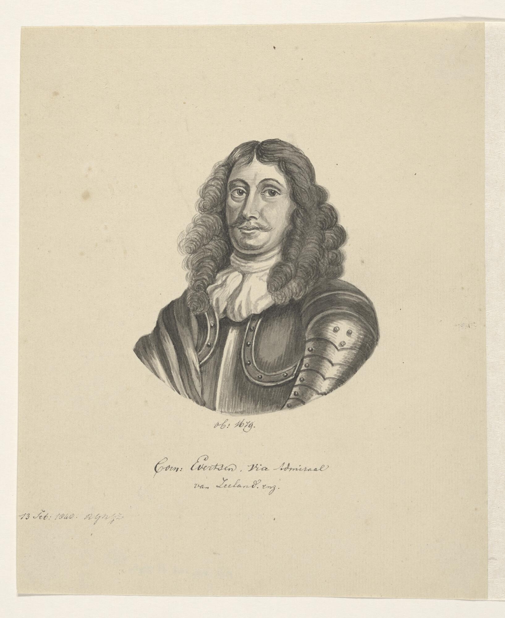 Portret van Jan Evertsen, Luitenant-Admiraal van Zeeland, geharnast borstbeeld naar rechts.
