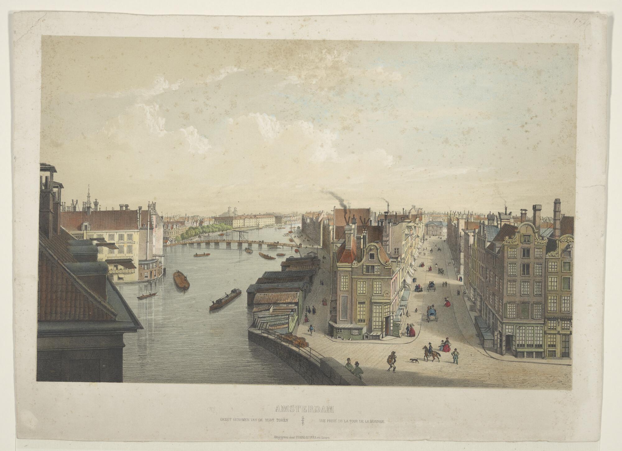 Panorama van Amsterdam vanaf de Munttoren, gezien naar het zuidoosten met de Amstel en Reguliersbreestraat.