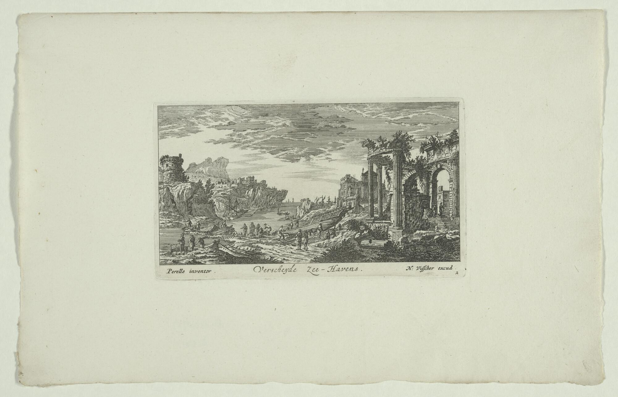 Gezicht op een onbekende buitenlandse haven in een landschap.