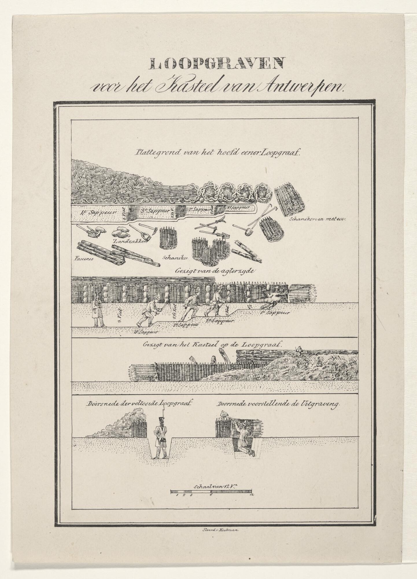 Loopgraven vam het kasteel van Antwerpen: beschrijving van de werkzaamheden in een loopgraaf.