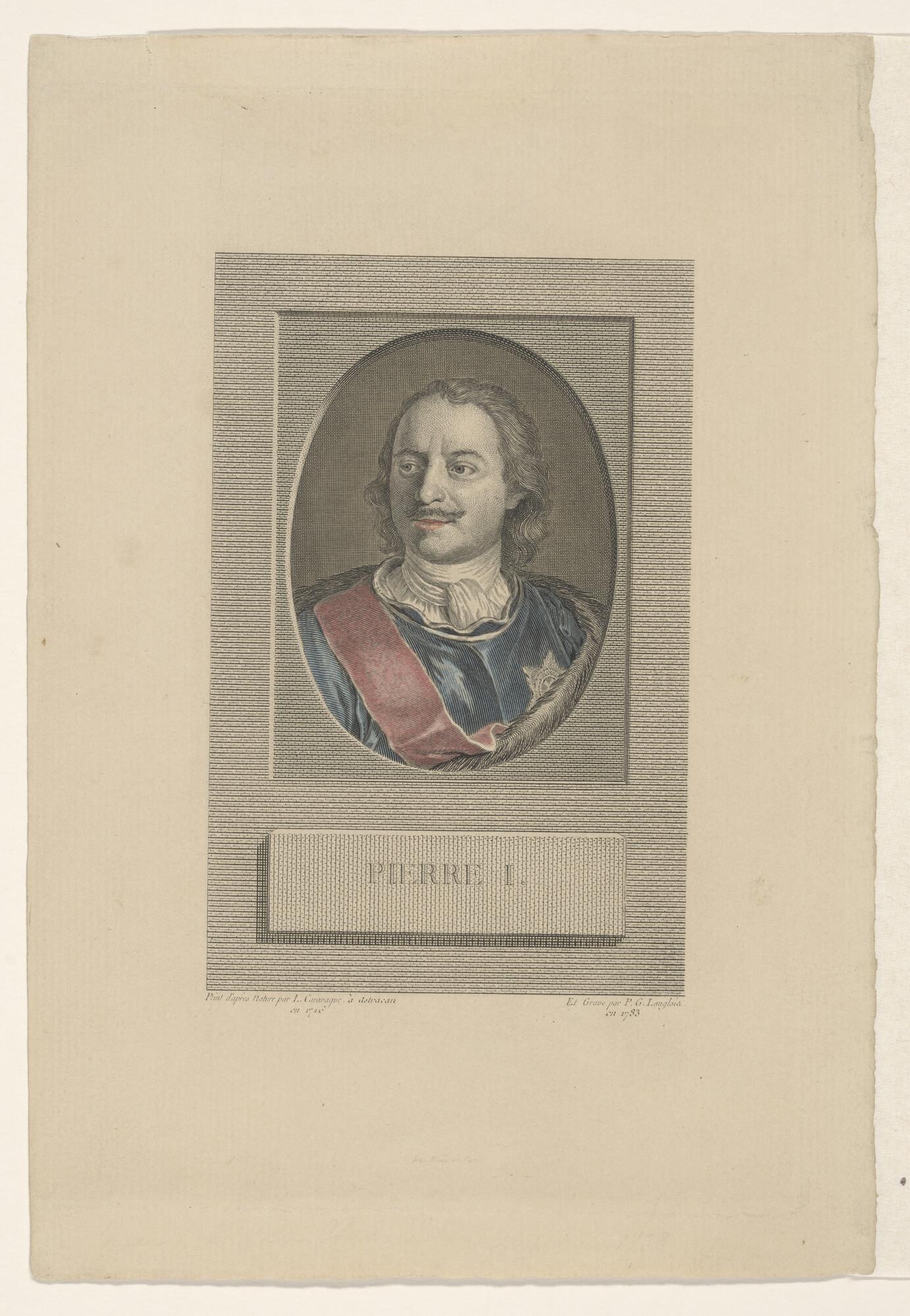 Portret van Czaar Peter de Grote, borstbeeld in ovaal.