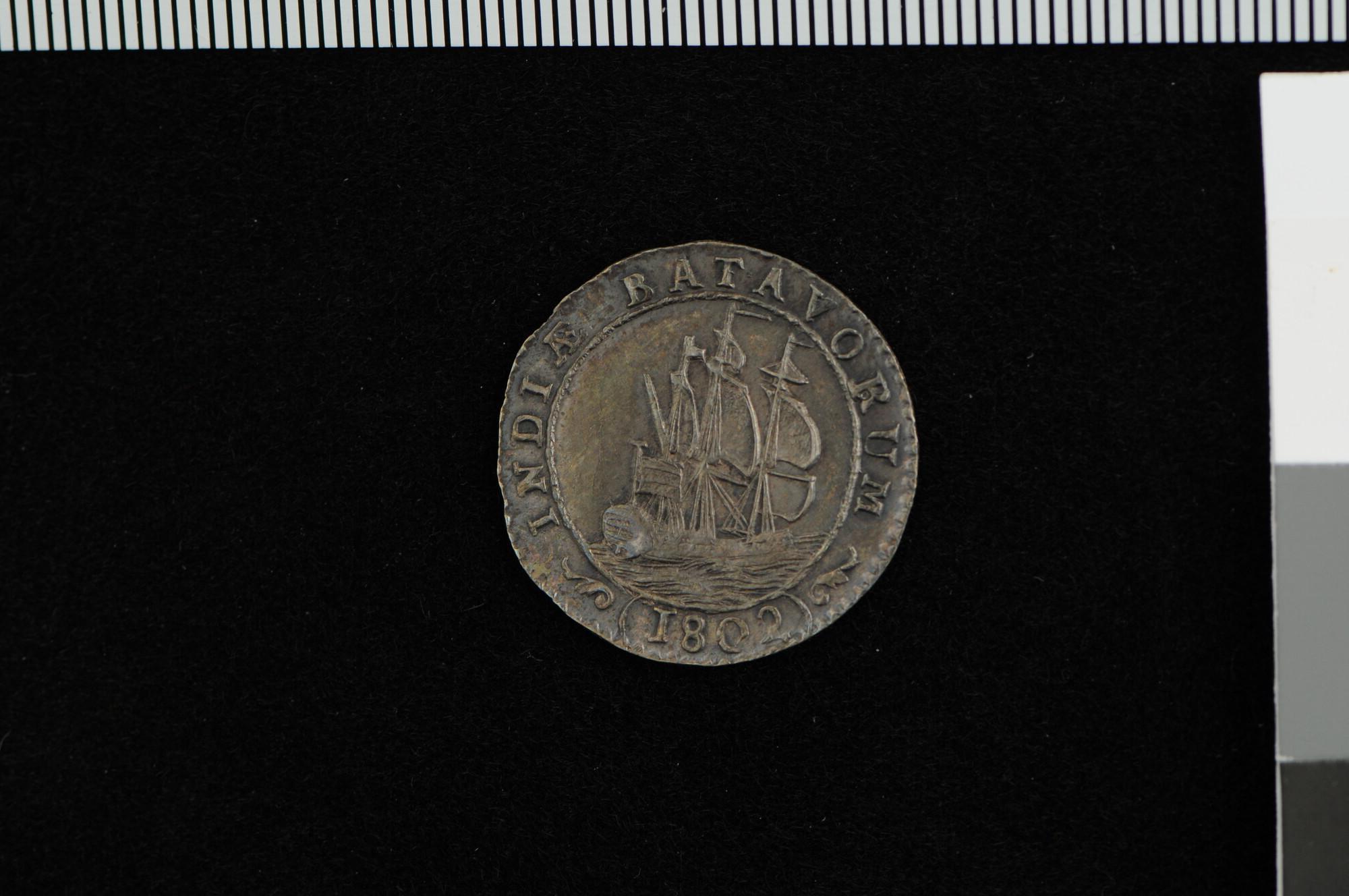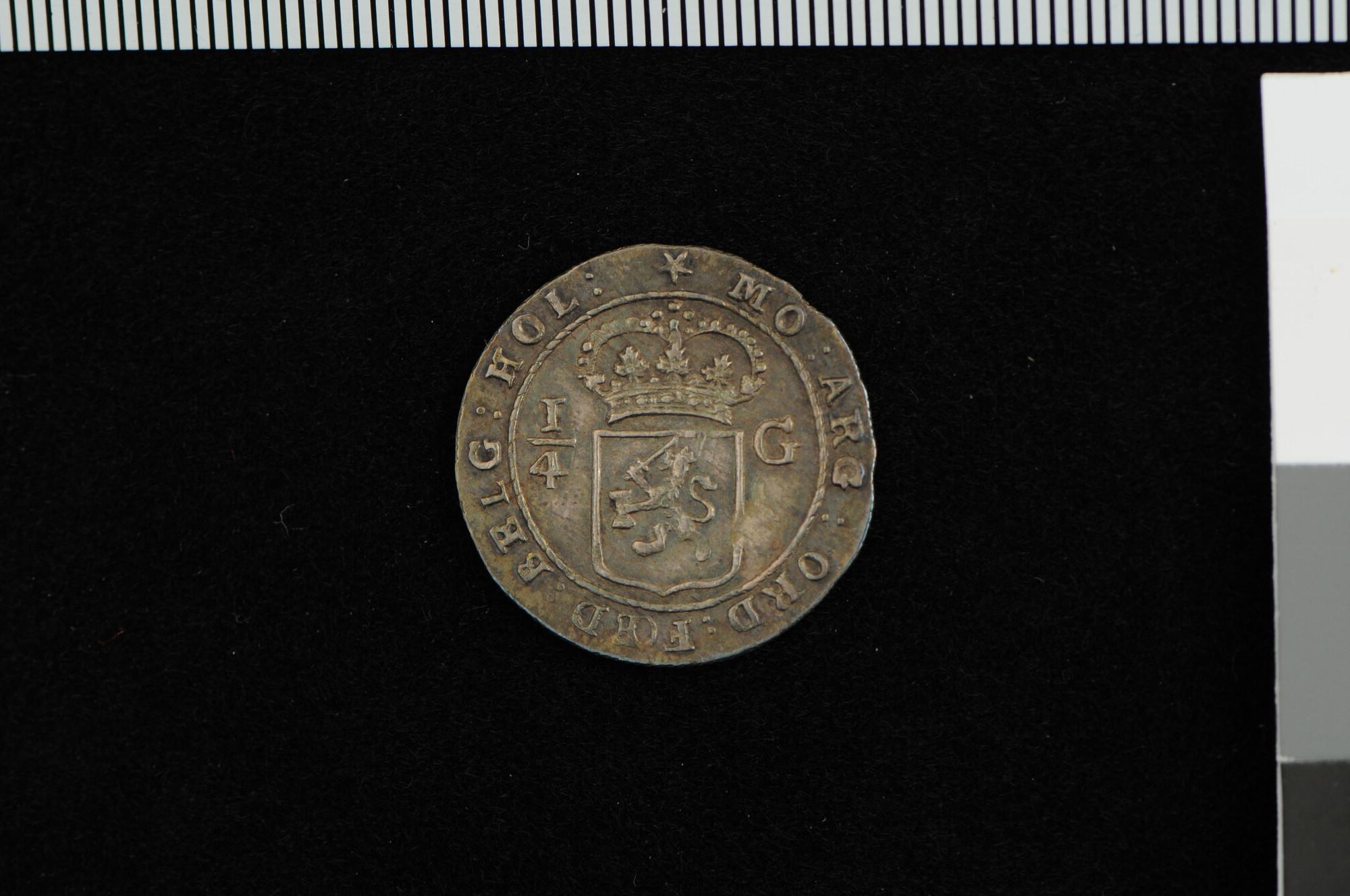 Scheepjesmunt in de waarde van 1/4 gulden, geslagen in 1802.