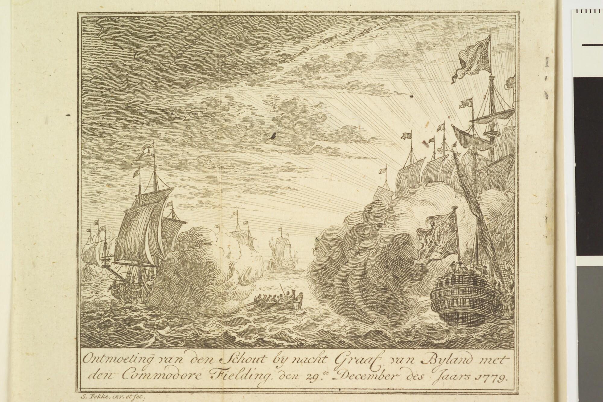 Ontmoeting van de Schout-bij-Nacht Graaf van Bijland met Commodore Fielding op 29 december 1779.