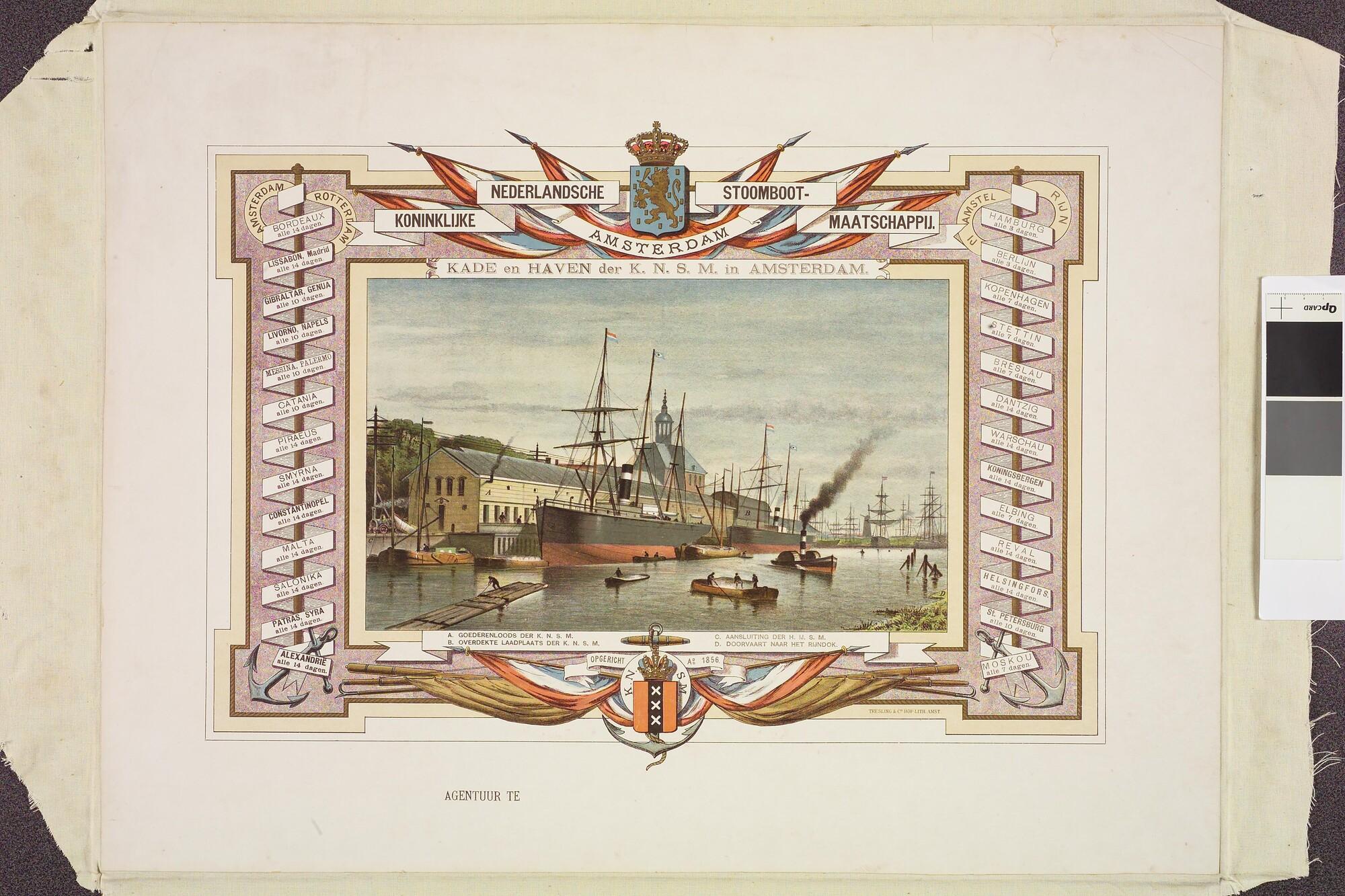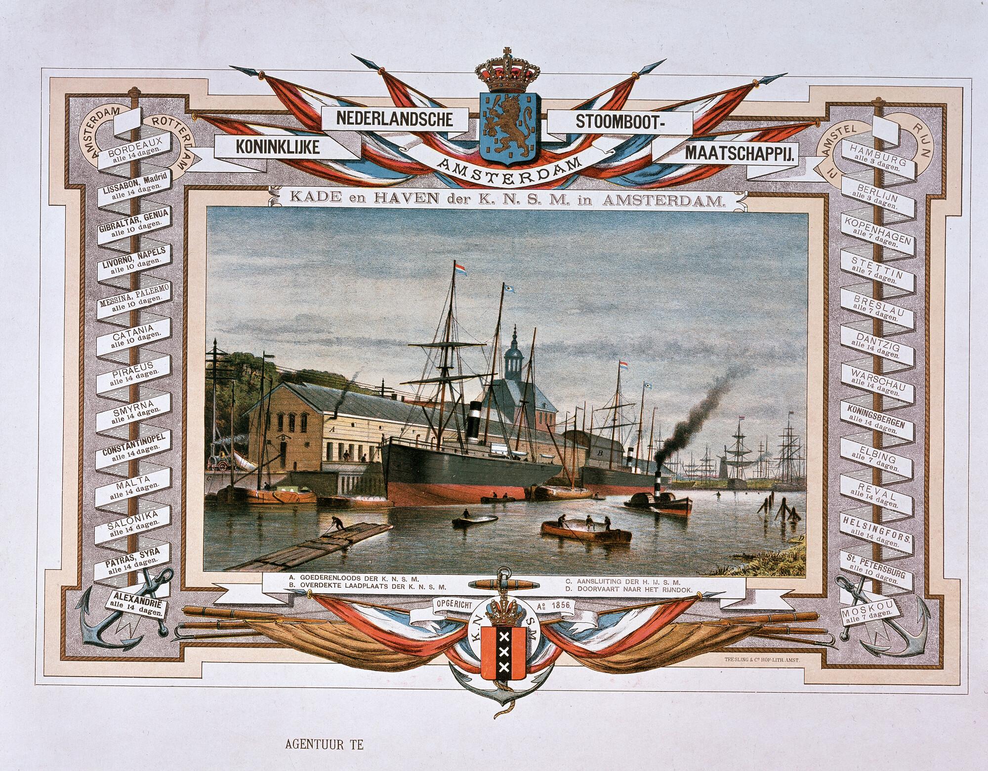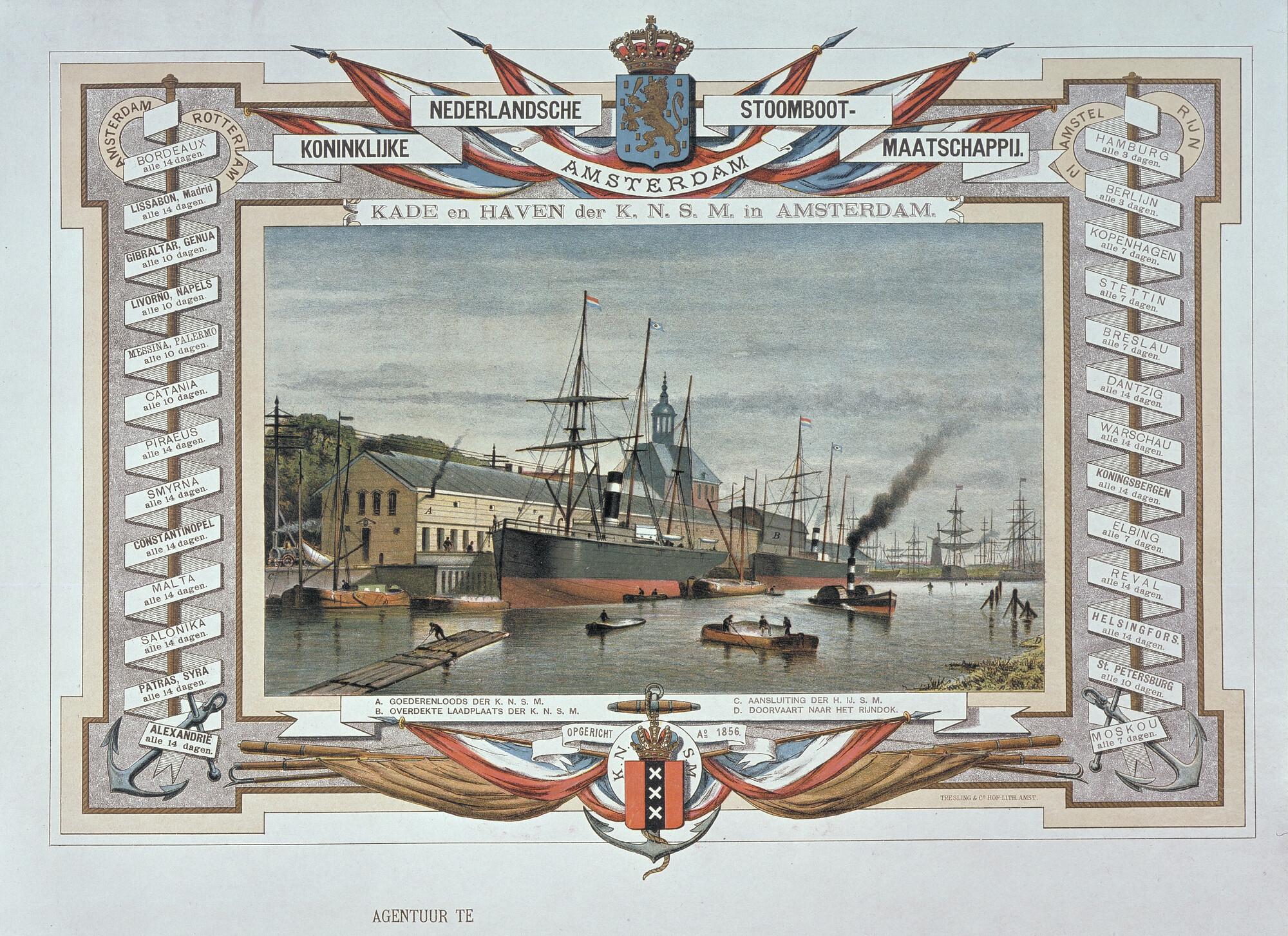 Etablissement van de Koninklijke Nederlandsche Stoomboot Maatschappij in Amsterdam rond 1885.