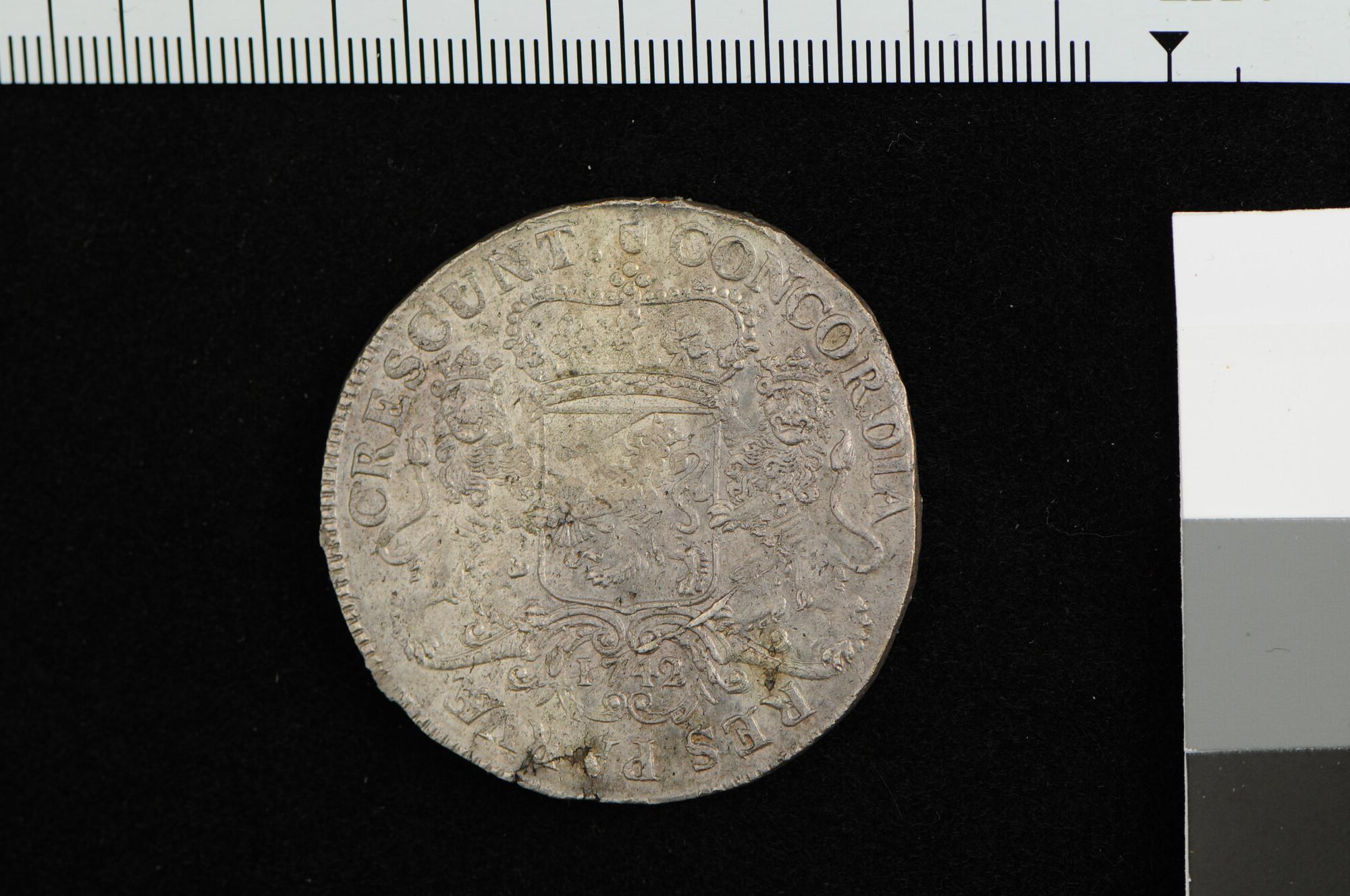 Een zilveren rijder, geslagen te Utrecht, afkomstig van de "Hollandia".