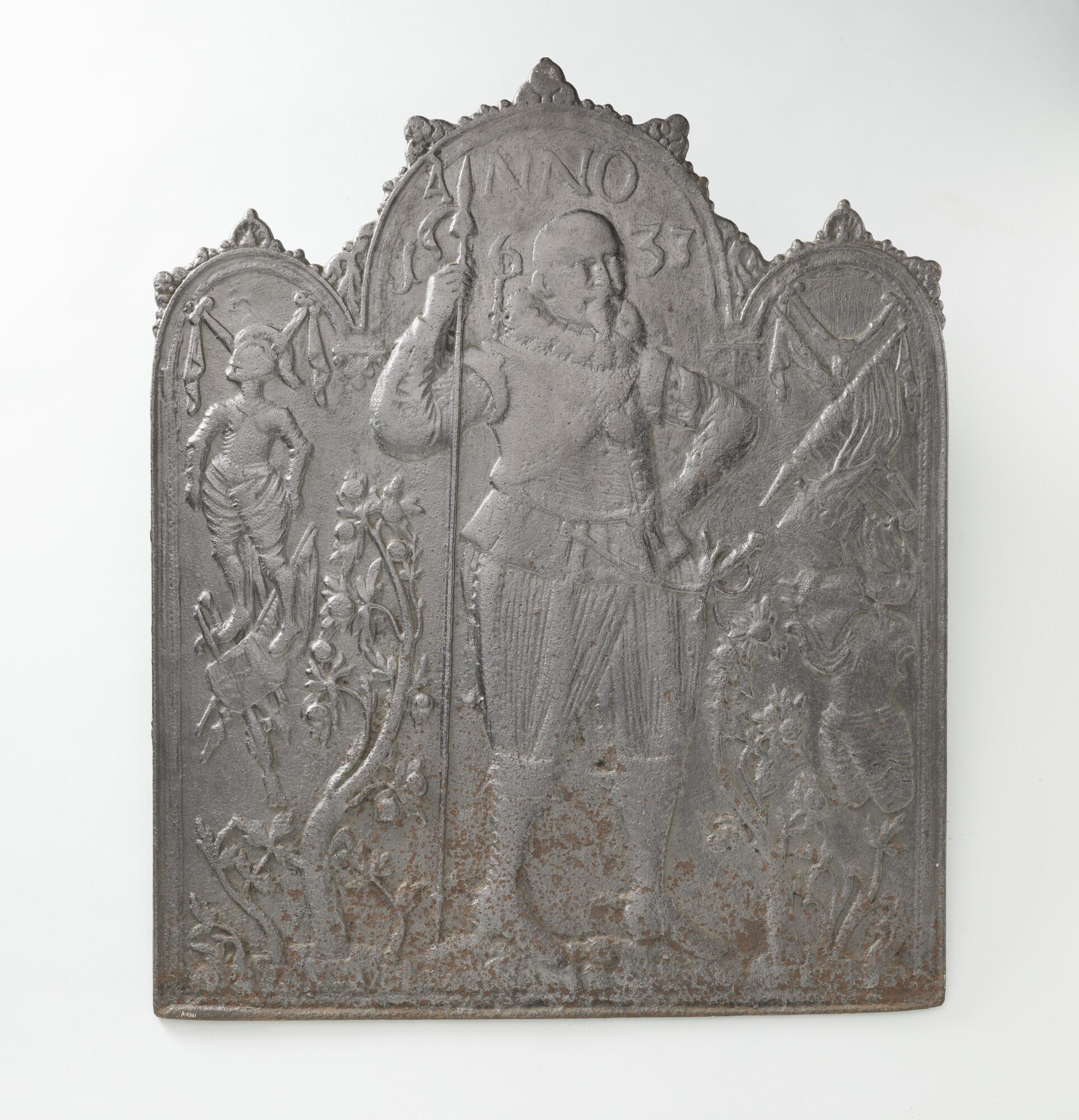Gietijzeren haardplaat, voorstellende de Luitenant-Admiraal Piet Heyn, gedateerd: anno 1633.
