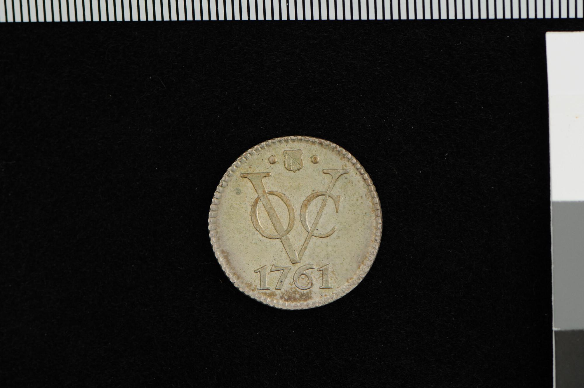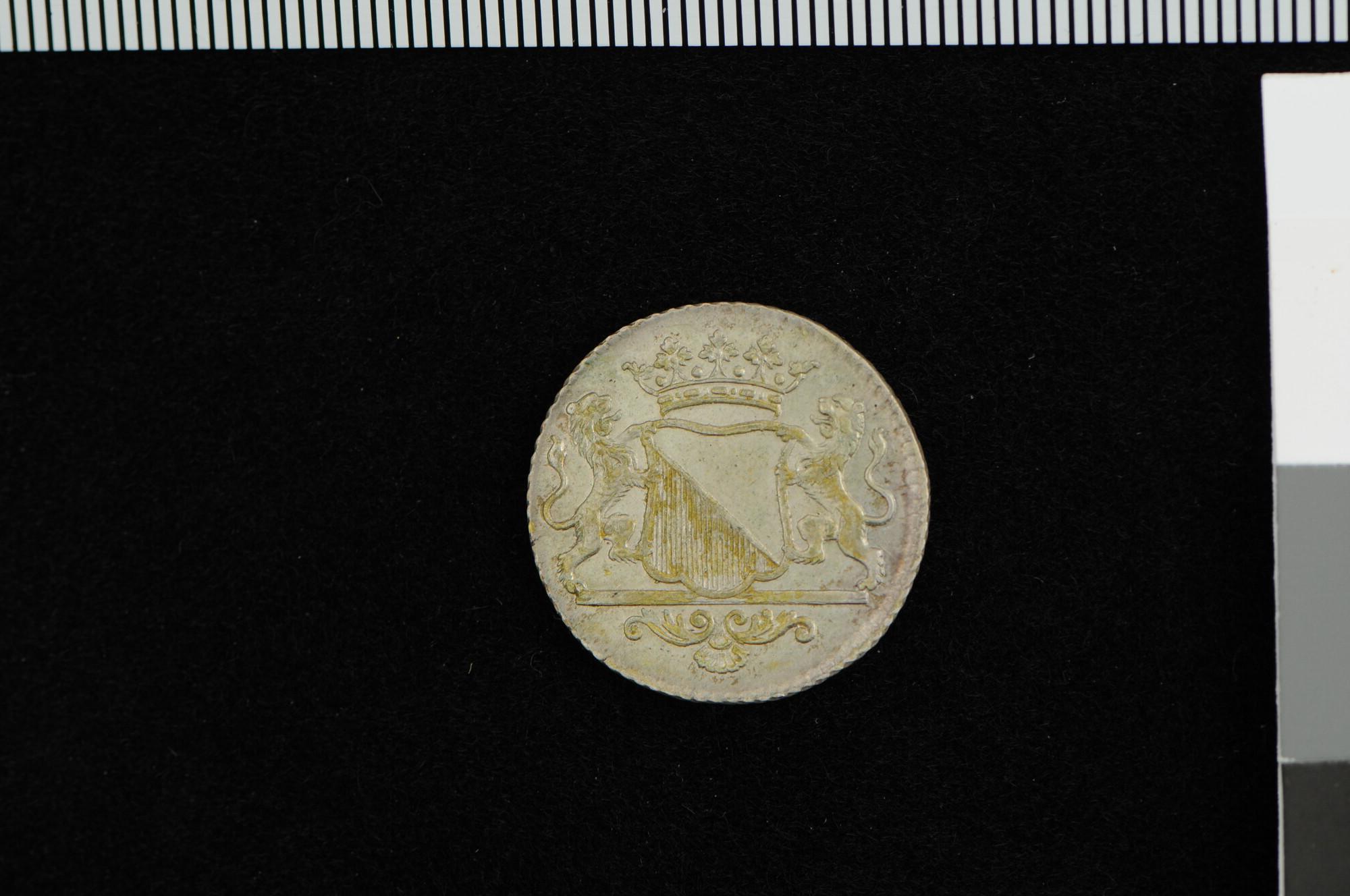 Zilveren afslag van een duit, 1756, Holland Nieuwjaarsmunt. Gekroond wapen met Hollandse leeuw.