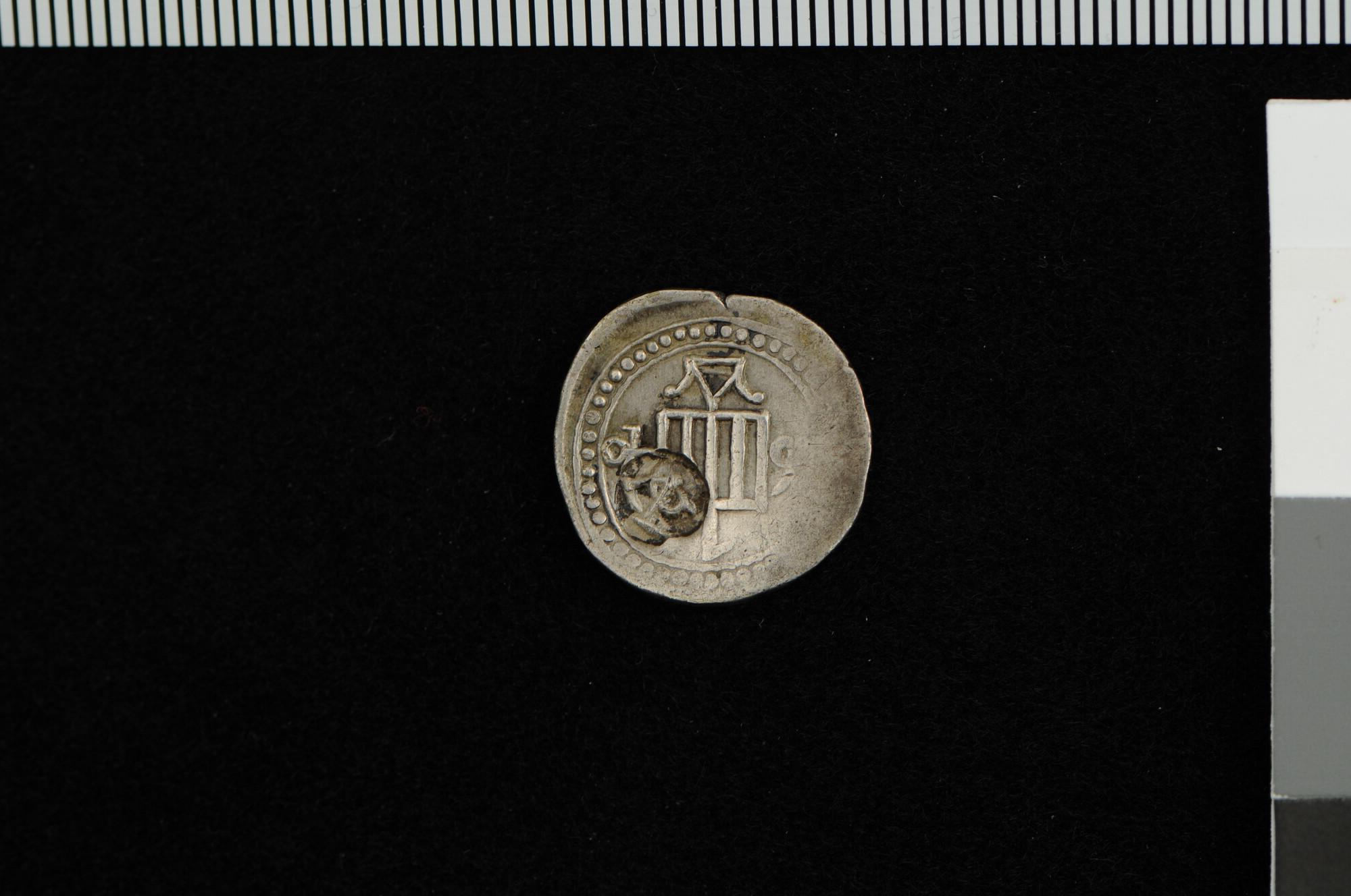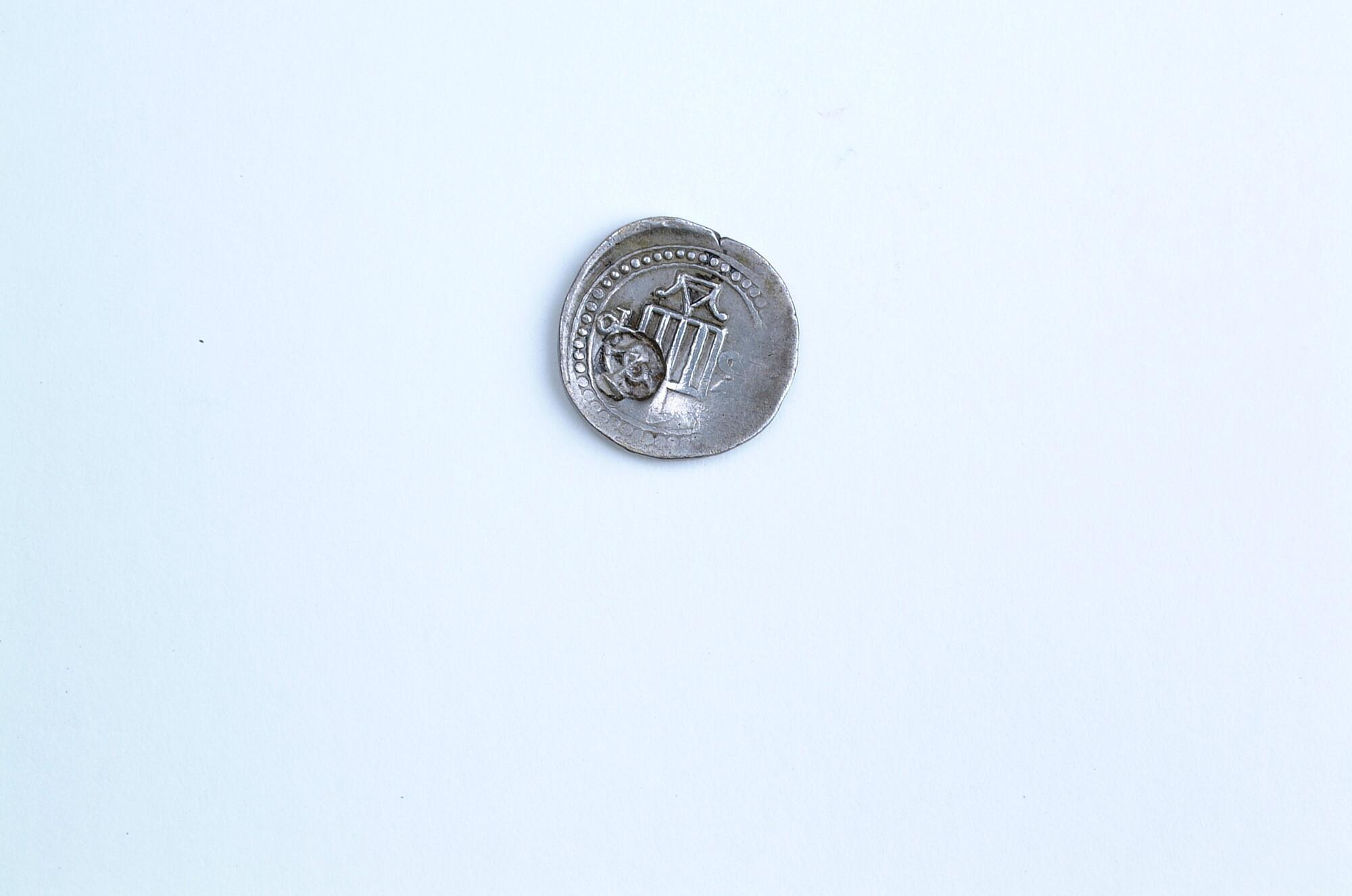 Een tanga, geslagen in 1640 te Colombo. Met klop VOC.