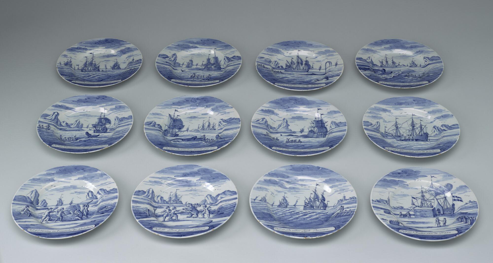 Bord van Delfts aardewerk met afbeelding van de walvisvaart