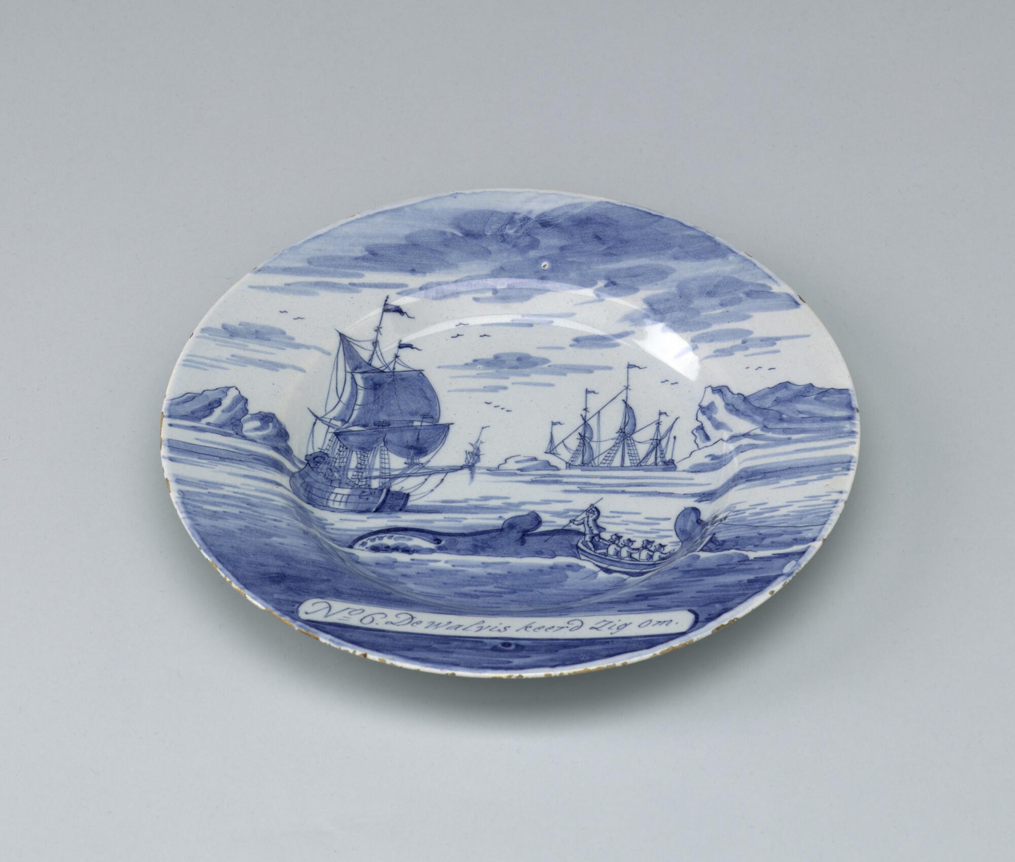 Bord van Delfts aardewerk met afbeelding van de walvisvaart