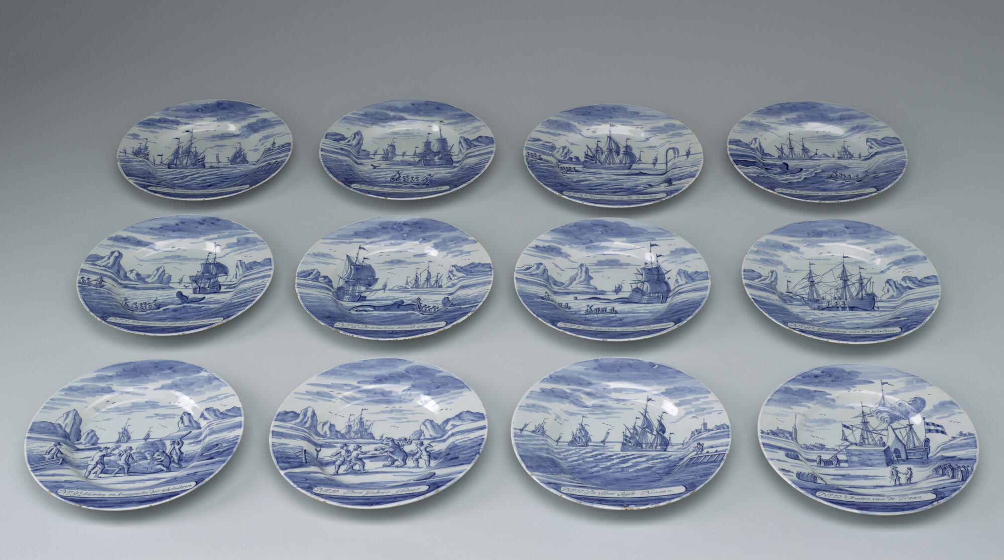 Bord van Delfts aardewerk met afbeelding van de walvisvaart