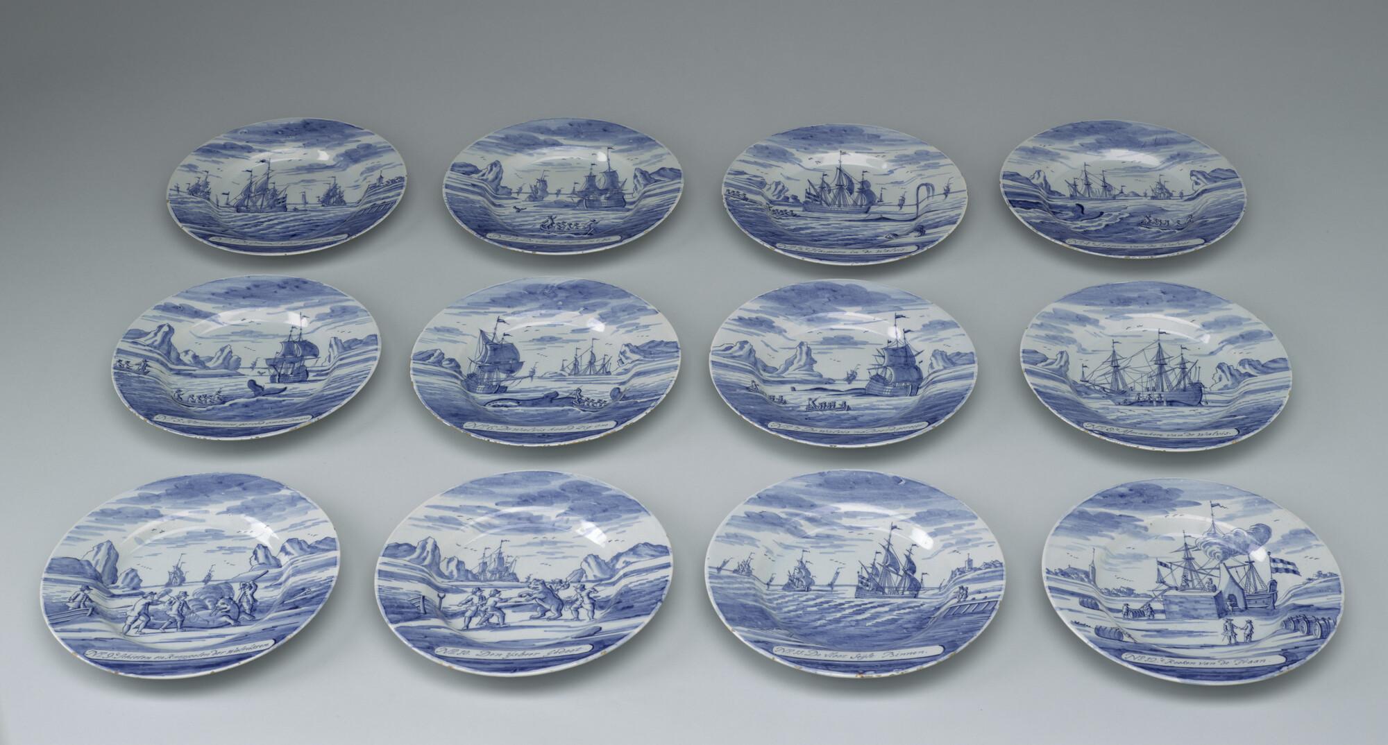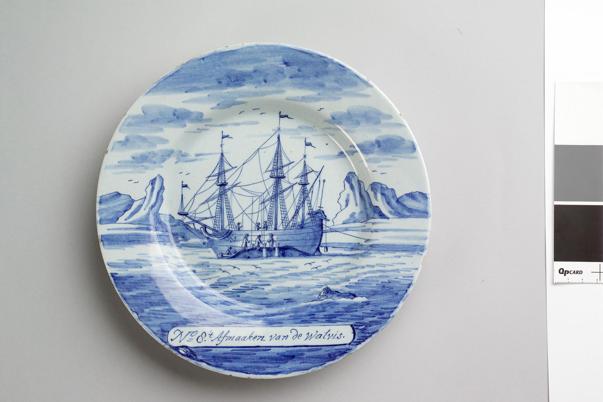 Bord van Delfts aardewerk met afbeelding van de walvisvaart