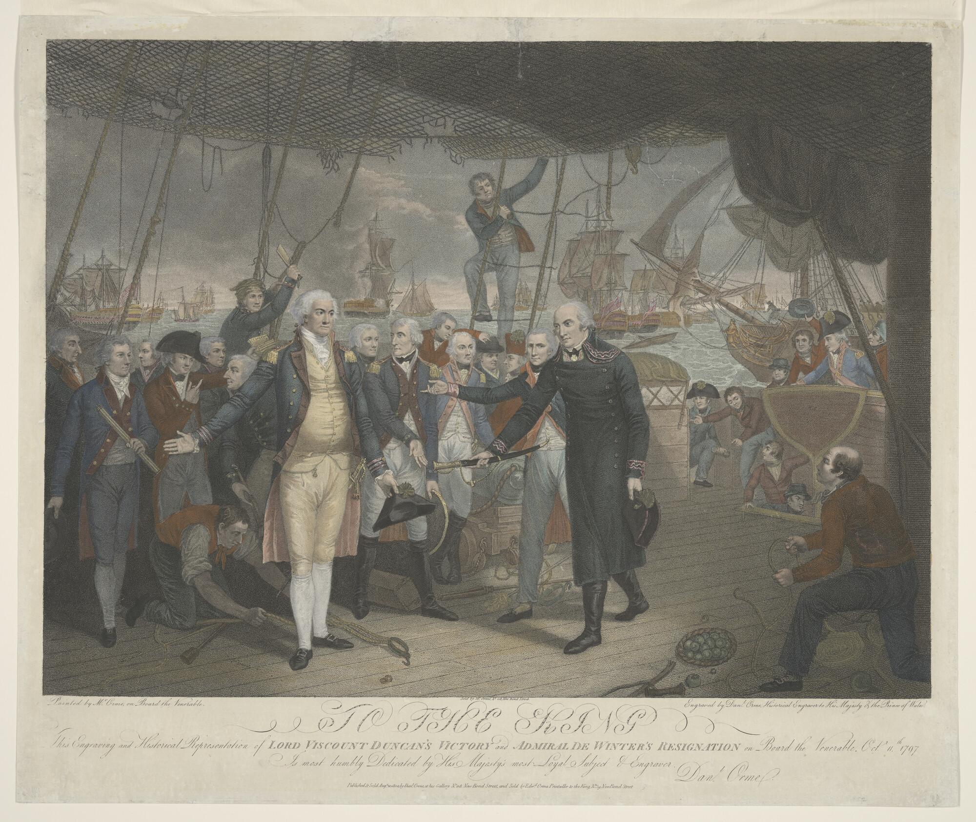 De overgave van admiraal J.W. de Winter aan admiraal A. Duncan, 11 october 1797.
