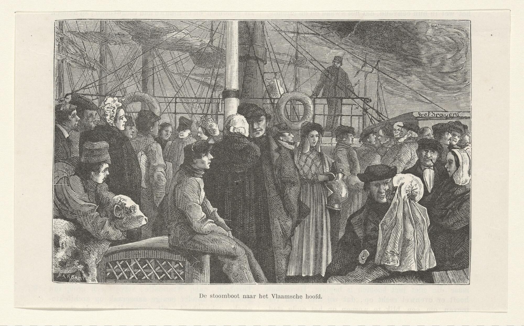 Passagiers aan dek van een raderstoomschip.