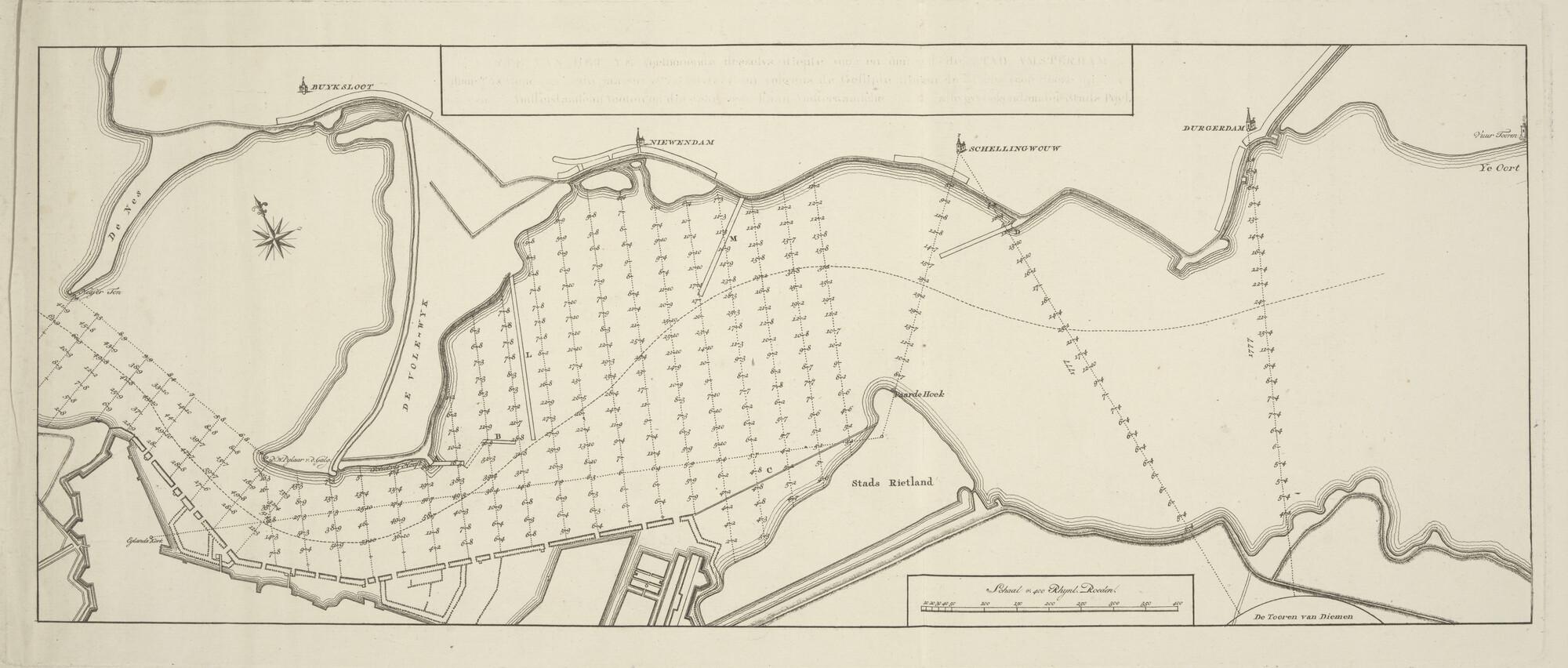 Kaart van het IJ met de Volewijk en Diemen